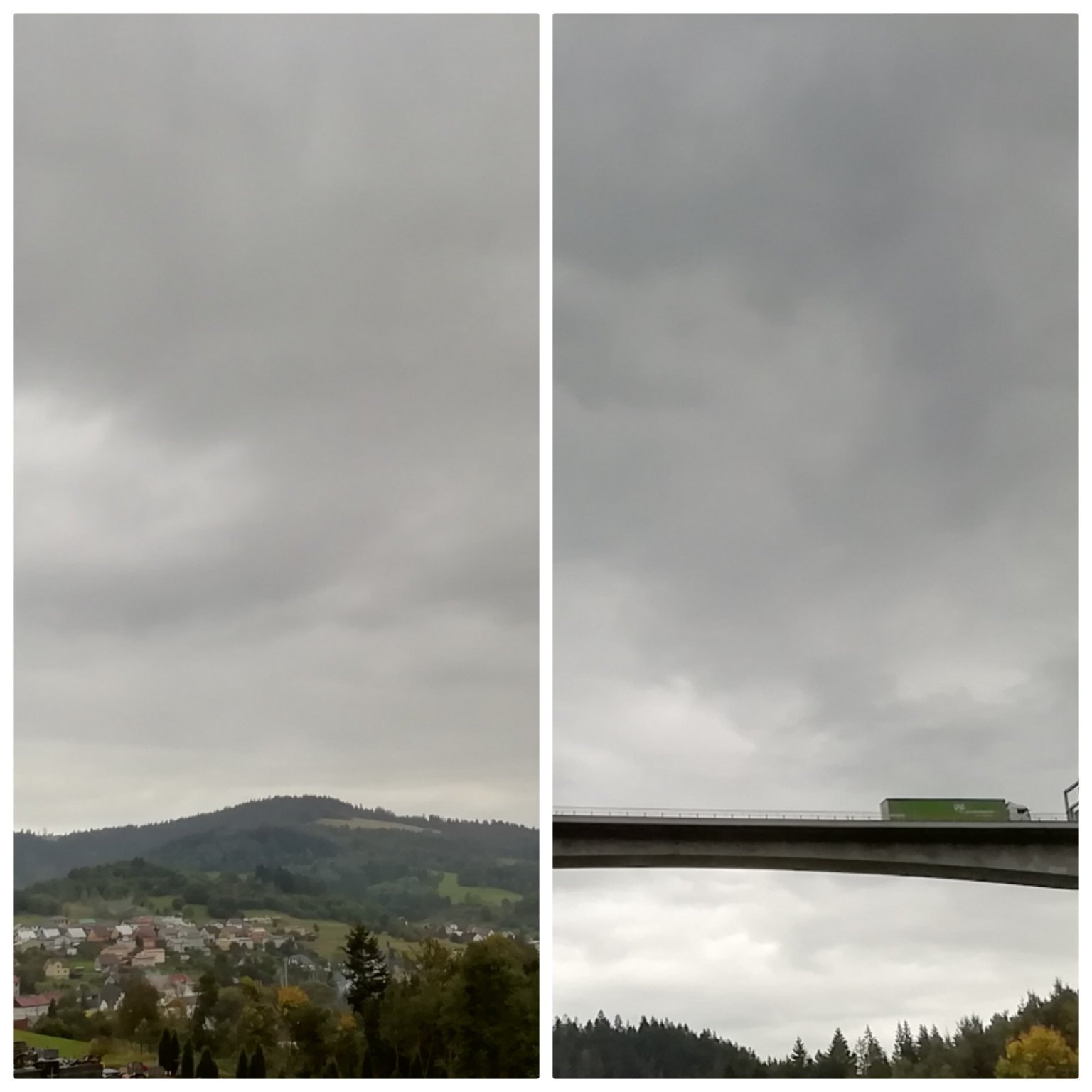 10,2°C, Zataženo. Zvlaštni Oblaky, jako vlny. Posilam Panorama z meho oblibeneho mista.