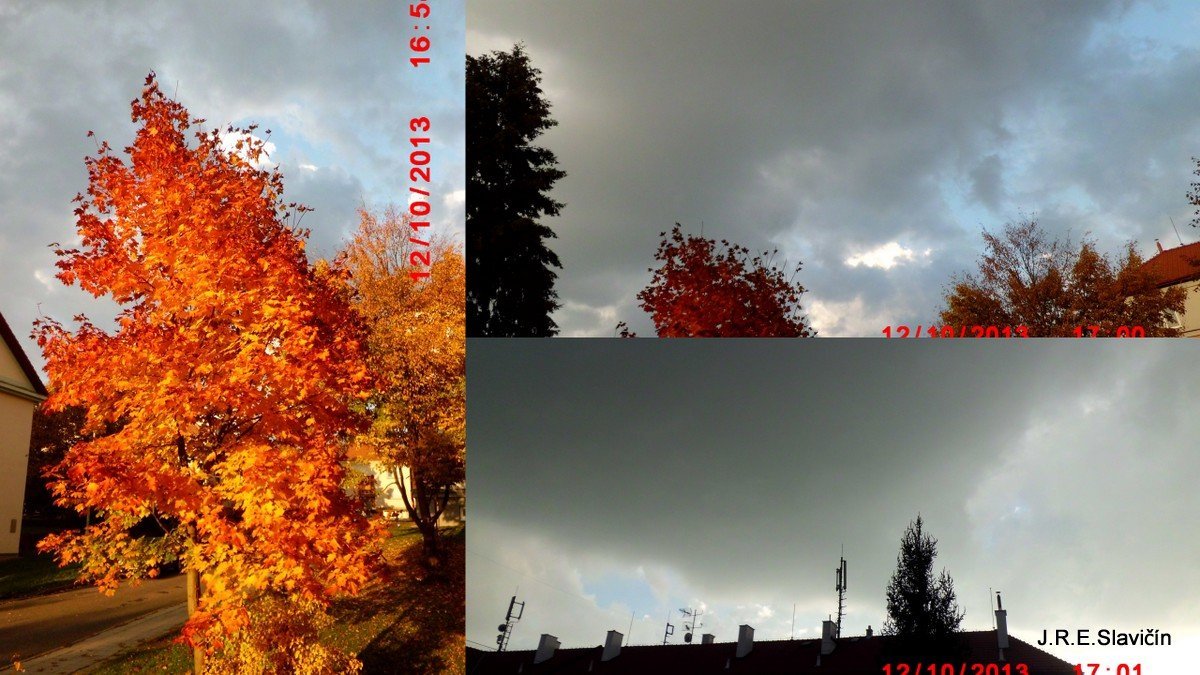 Zataženo, slabý déšť, slábnoucí východní vítr, tlak 1012 hPa. Foto: odpolední přibývání oblačnosti od západu.