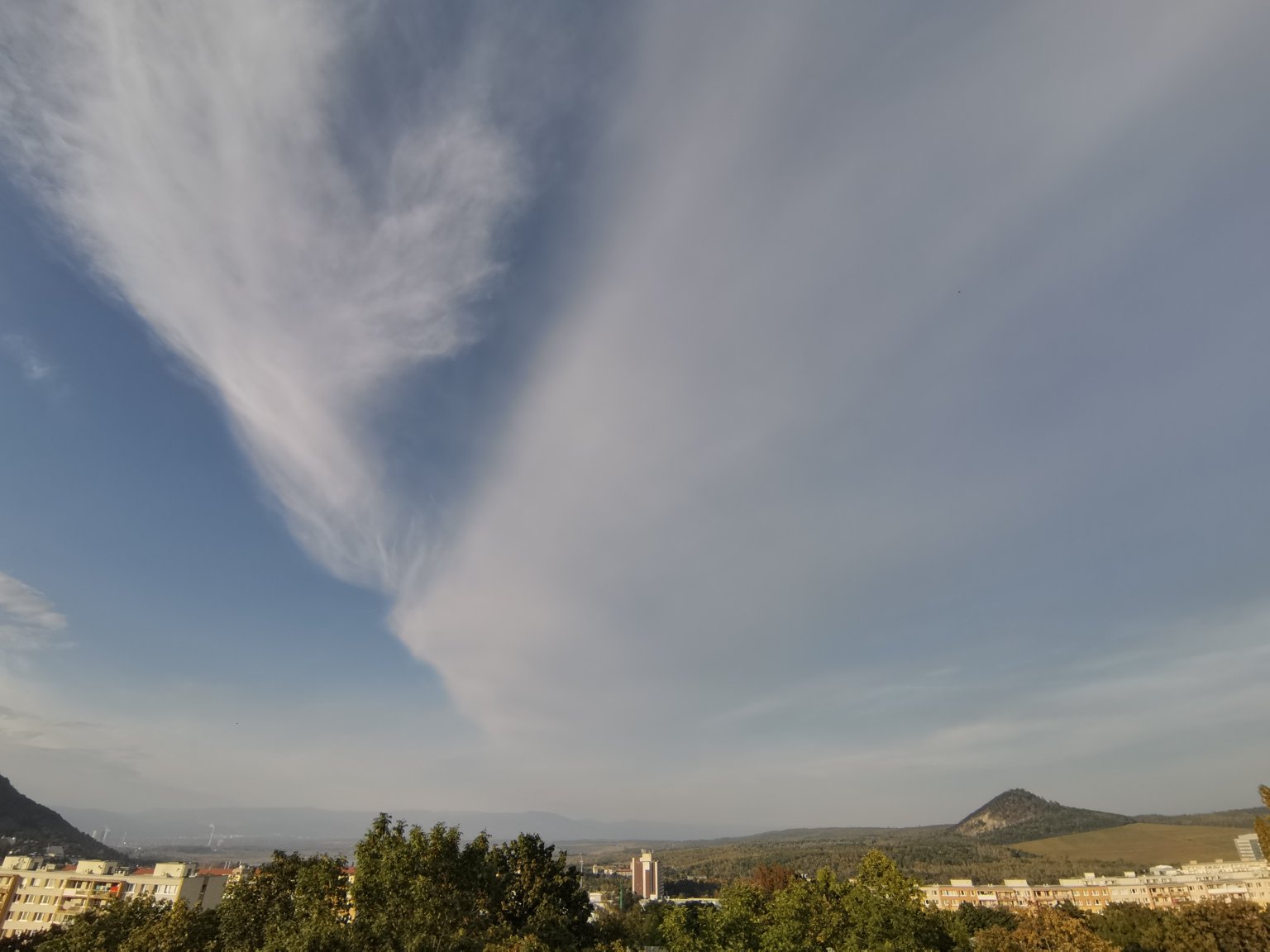 Aktuálně převažuje většinou polojasno a fouká většinou mírný vítr, v dálce by měl být Pelhřimov ale není to moc vidět