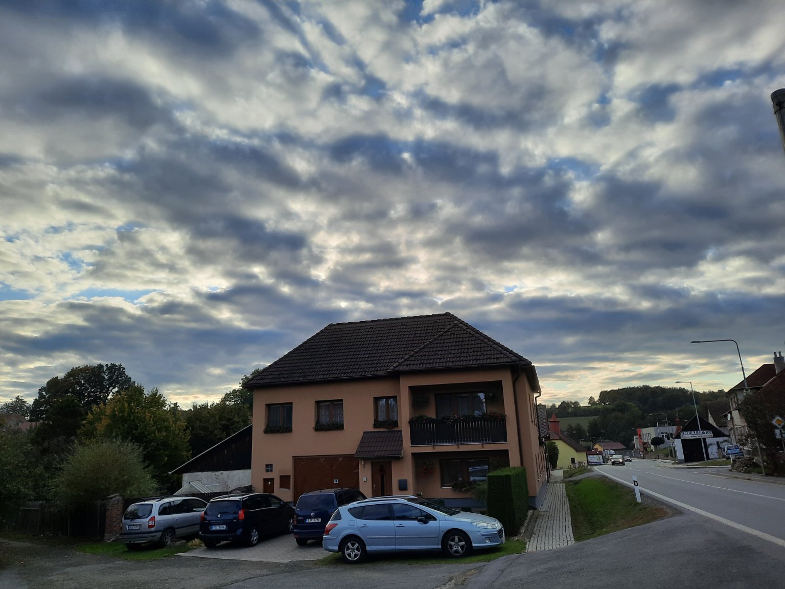 -°C, Polojasno. Extremně zvlaštni Oblaky, vypadaji Jak Supercela, Shelf-Cloud a Zvlaštni sněhove Pasy!!!!! (Posilam Panorama).
