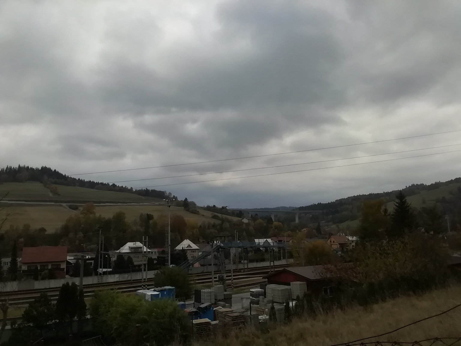 Slabý až mírný JV vítr, srážky zatím 1mm, tlak 999 hPa, vlhkost 96%