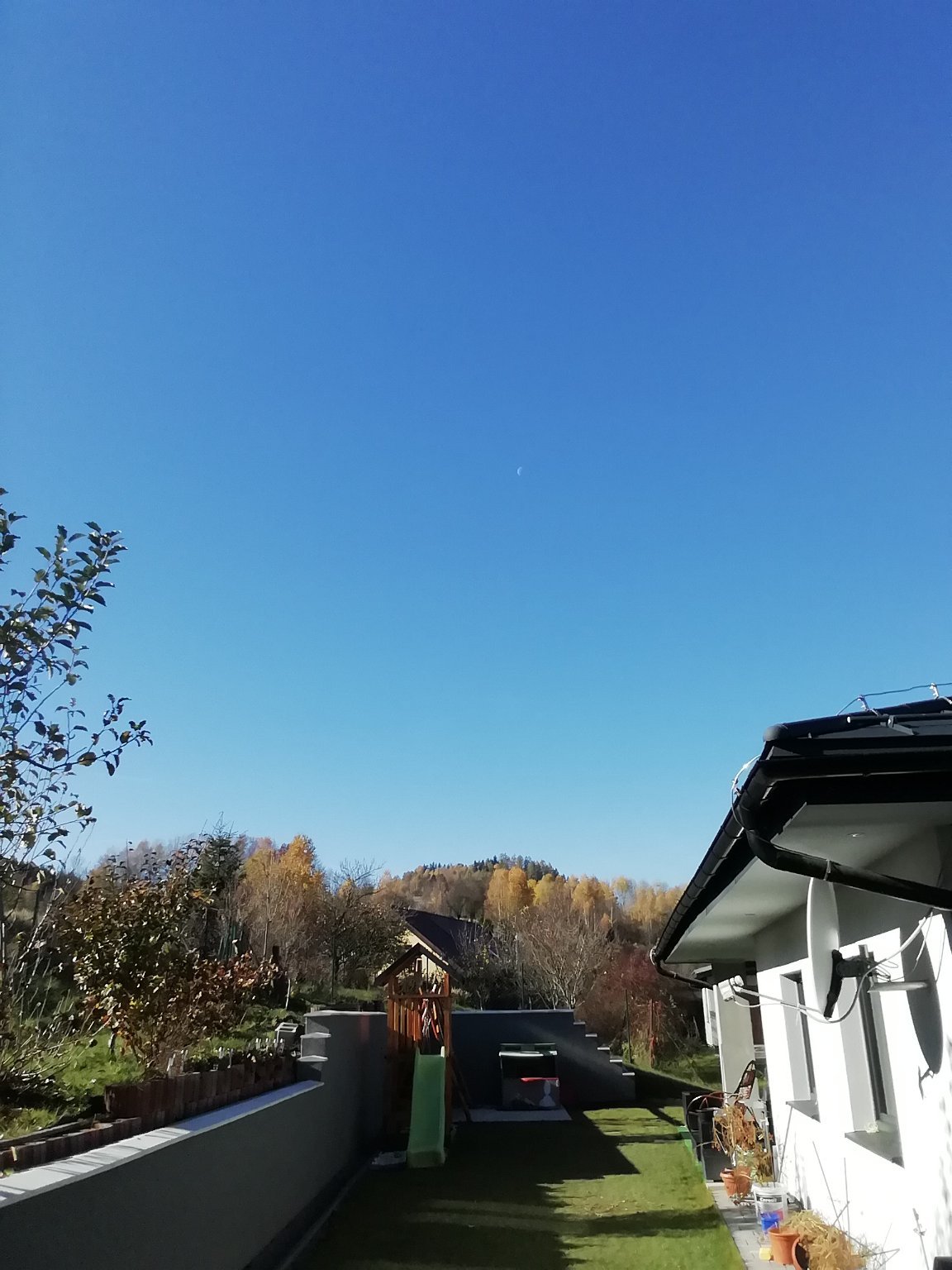 Lehký opar, JV vítr 11km/h, tlak 1018,4 hPa, vlhkost 66 %. Dnešní minimum bylo 3,8 °C.