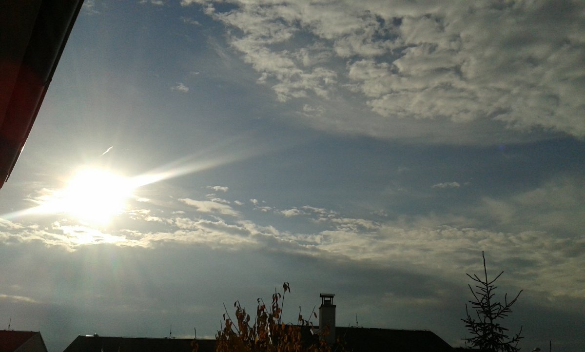 Celi dopoledne a cast odpoledne bylo polojasno az oblacno oblacnosti vsech vrstev. Tet je skoro zatazeno po slaby prehance. Vitr je slaby promnenlivy.