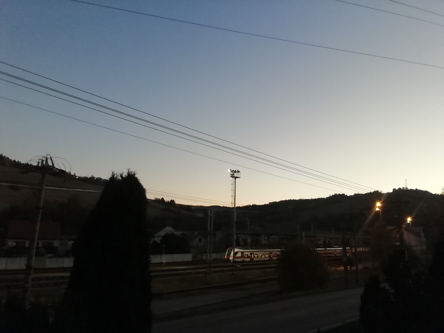 Vlhkost 60%, rychlost větru 11,2 m/s, nárazy až 23 m/s. Momentálně v důsledku silného větru vypadl proud v celé obci, tak je aspoň lépe vidět polární záře (fotografie není nijak upravena).