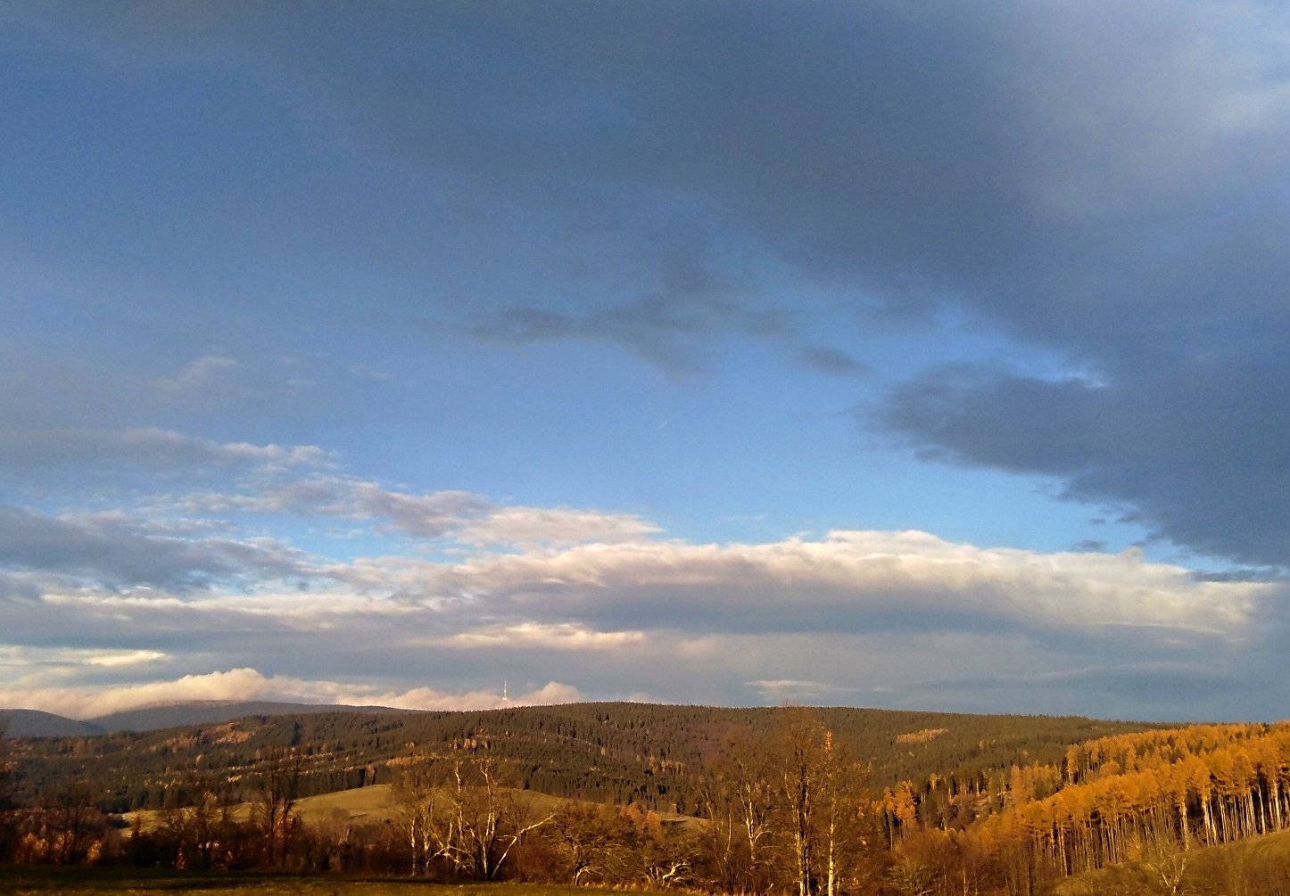 Čočkovitý mrak (Altocumulus lenticularis), rozfoukal se hodně studený JZ mírný vítr, zatahuje se