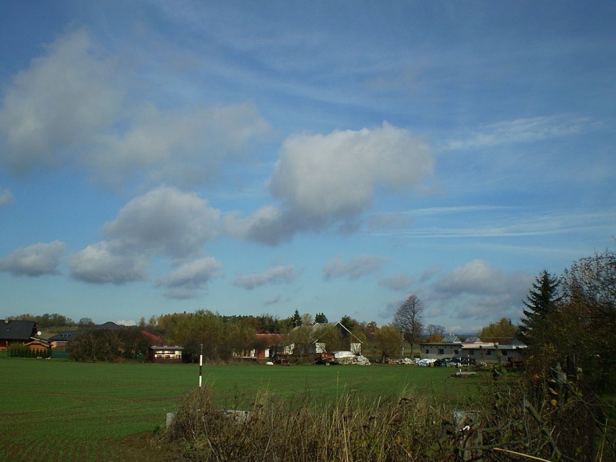 Kupovitá oblačnost nad Prahou, vlhkost 64%.