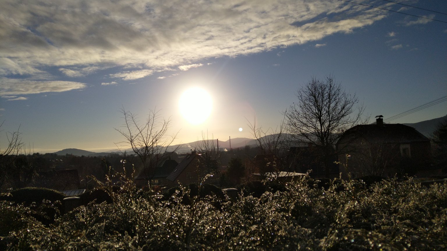 Slabý vítr, na volných plochách mráz a jíní.
