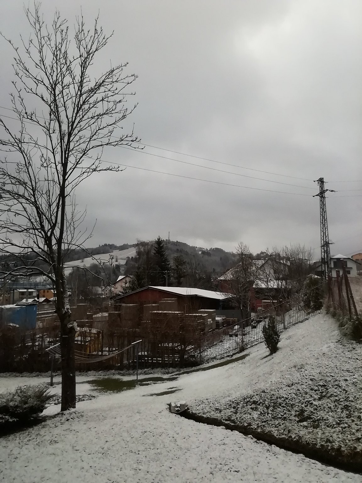 2021 11 27 v 09:05:49 skoro jasno -3° večer napadl sníh - drží se +1 cm