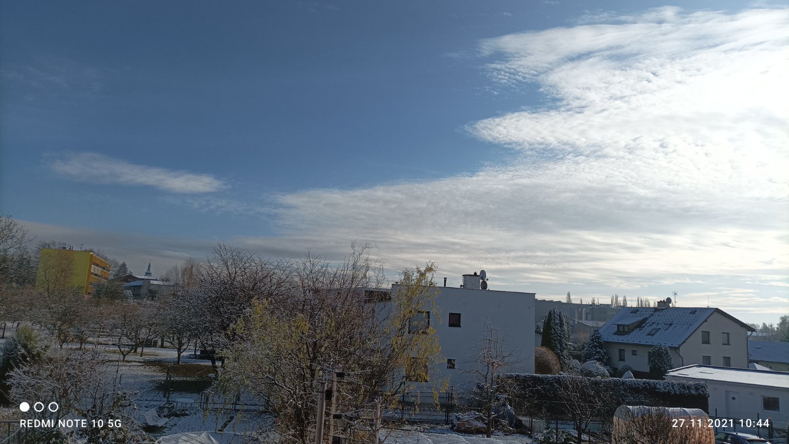 1,3°C, Polojasno, Sníh: nesouvislý. Na hoře Kozubové je bílo, u nás sníh taje. Blíží se silně sněžení.