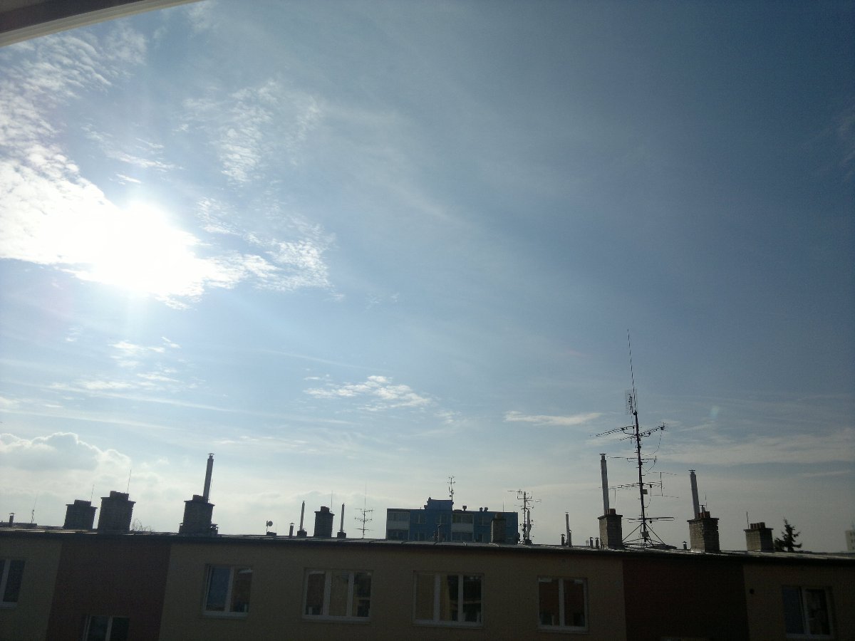 Oblačnost 73,2%, zákl.mraků 2595m, tlak 1019,3hPa(klesá), dohlednost 30km, vlhkost 69,3%, ZSZ větřík 294° 2,6m/s(2 Bft).