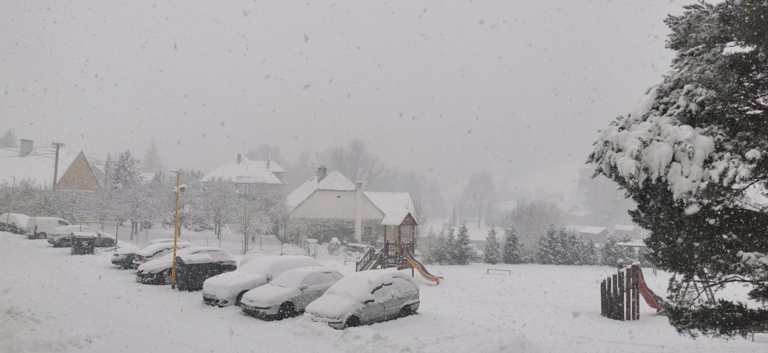 Aktuálně převažuje většinou zataženo a drobně, slabě sněží sněžení už ustalo a fouká většinou vánek