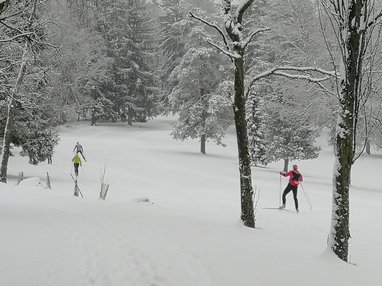 po vydatném sněžení výška sněhu 15 - 20cm jak kde, zataženo, drobné sněhové mrholení, 0°C