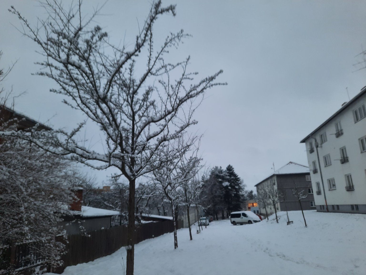 SZ vítr 28 km/h, tlak 1001,1 hPa, vlhkost 90 %. Min. teplota -2,4 °C.