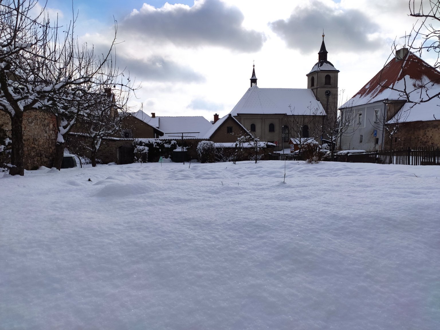Občasné slabé sněžení, výška sněhu do 15cm.