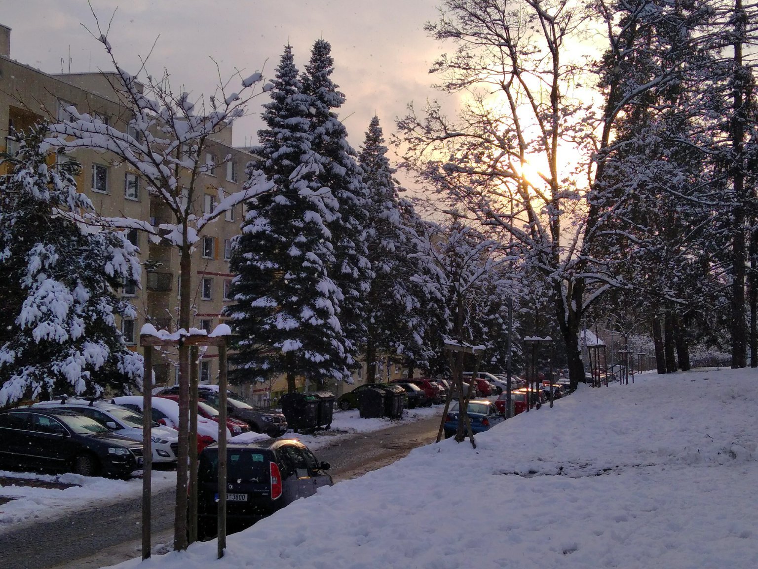 Klidno, bezvětří, ve městě ❄sníh❄ po dopadu hned taje