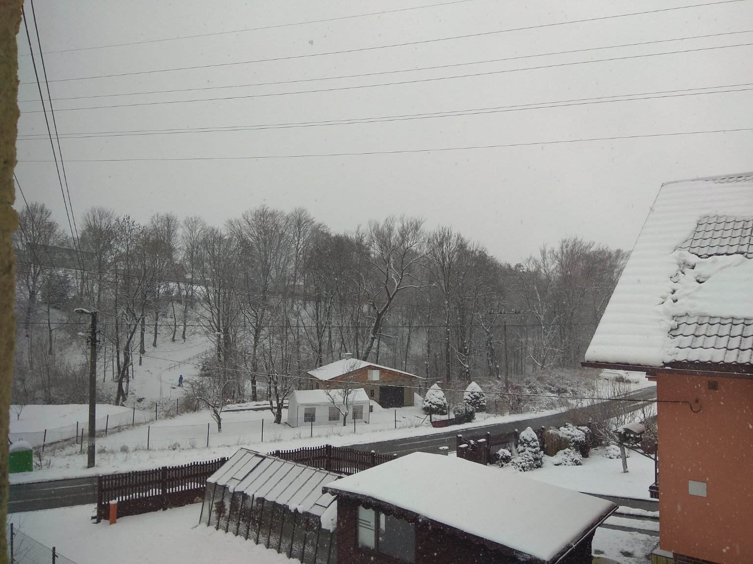 Trvalé slabé sněžení, postupně zesilující vichr, který tvoří jazyky a závěje.