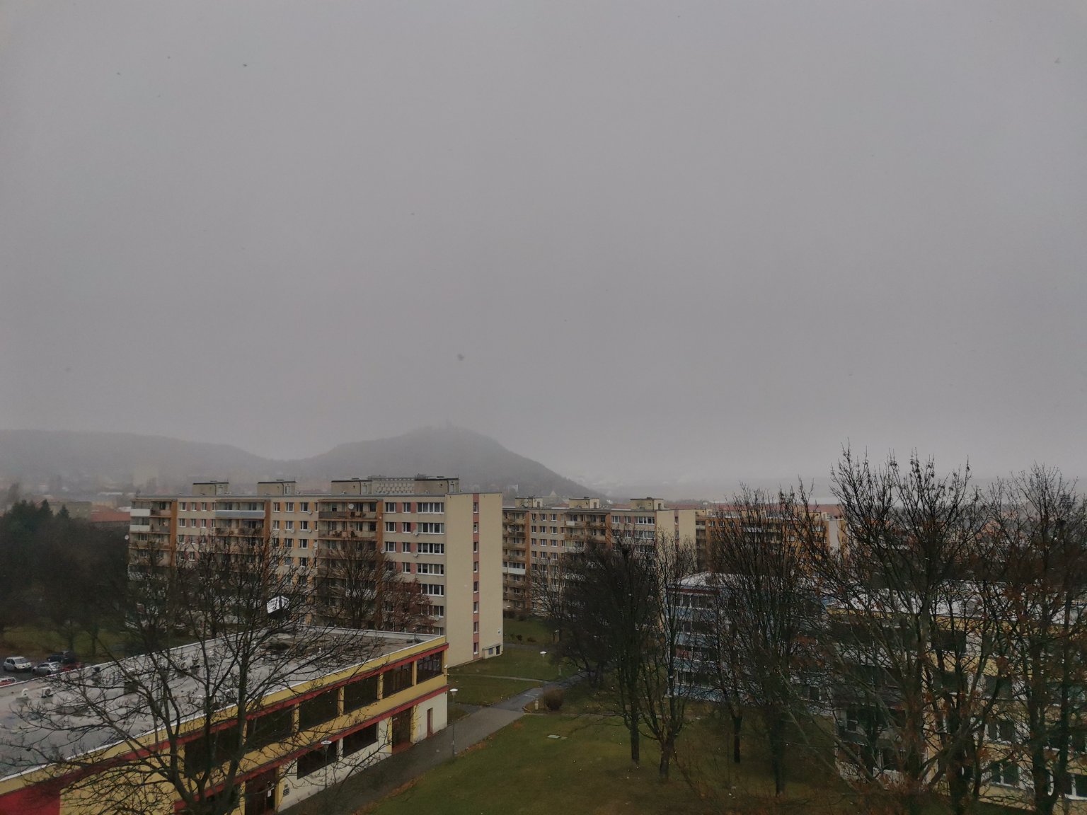 slabý až mírný vítr, sněží ale sníh nějak výrazně nepřibývá, teplota kolem 0°C
