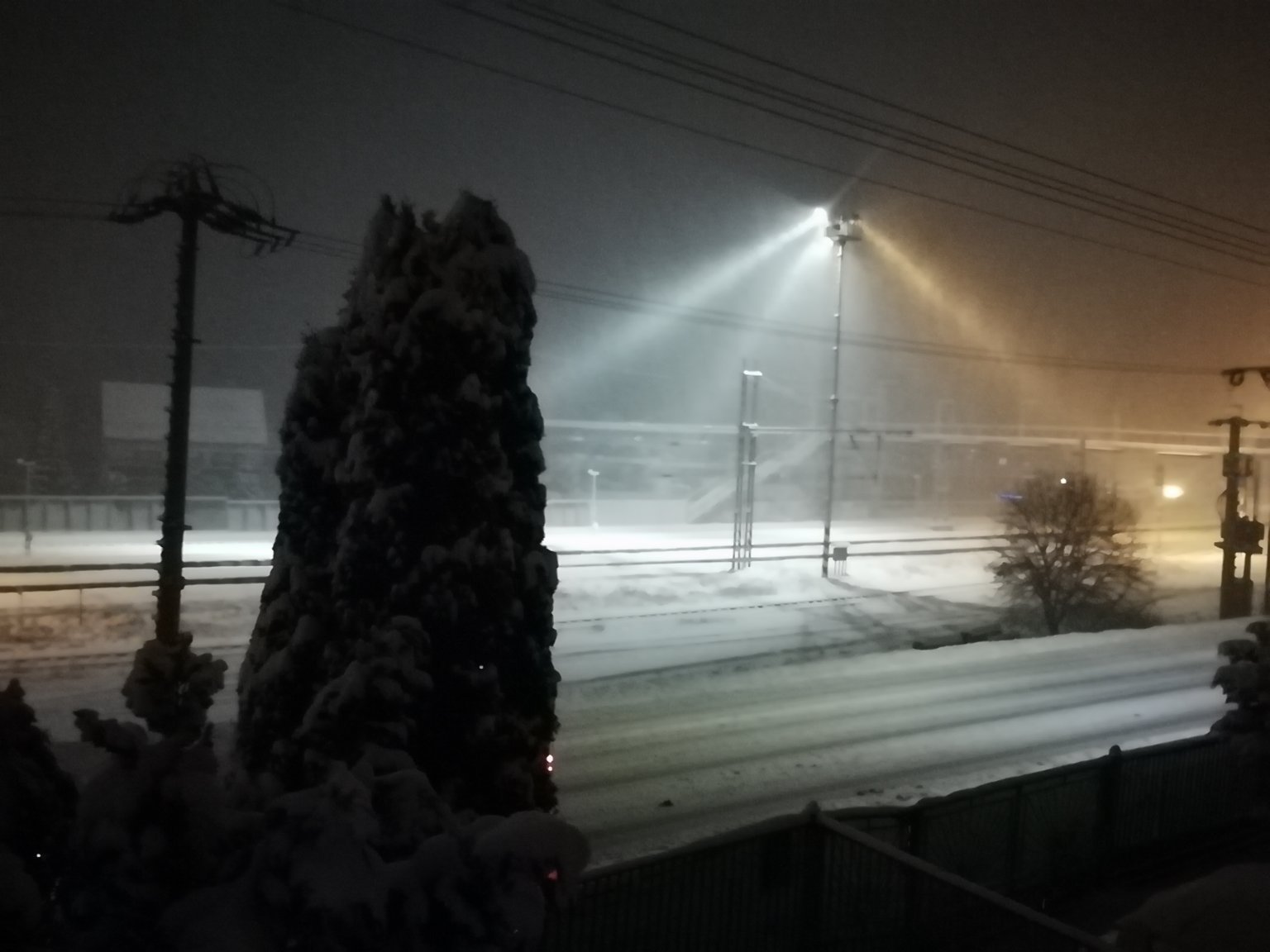 Mírné až silné trvalé sněžení. Silný vítr tvořící sněhové jazyky a závěje.