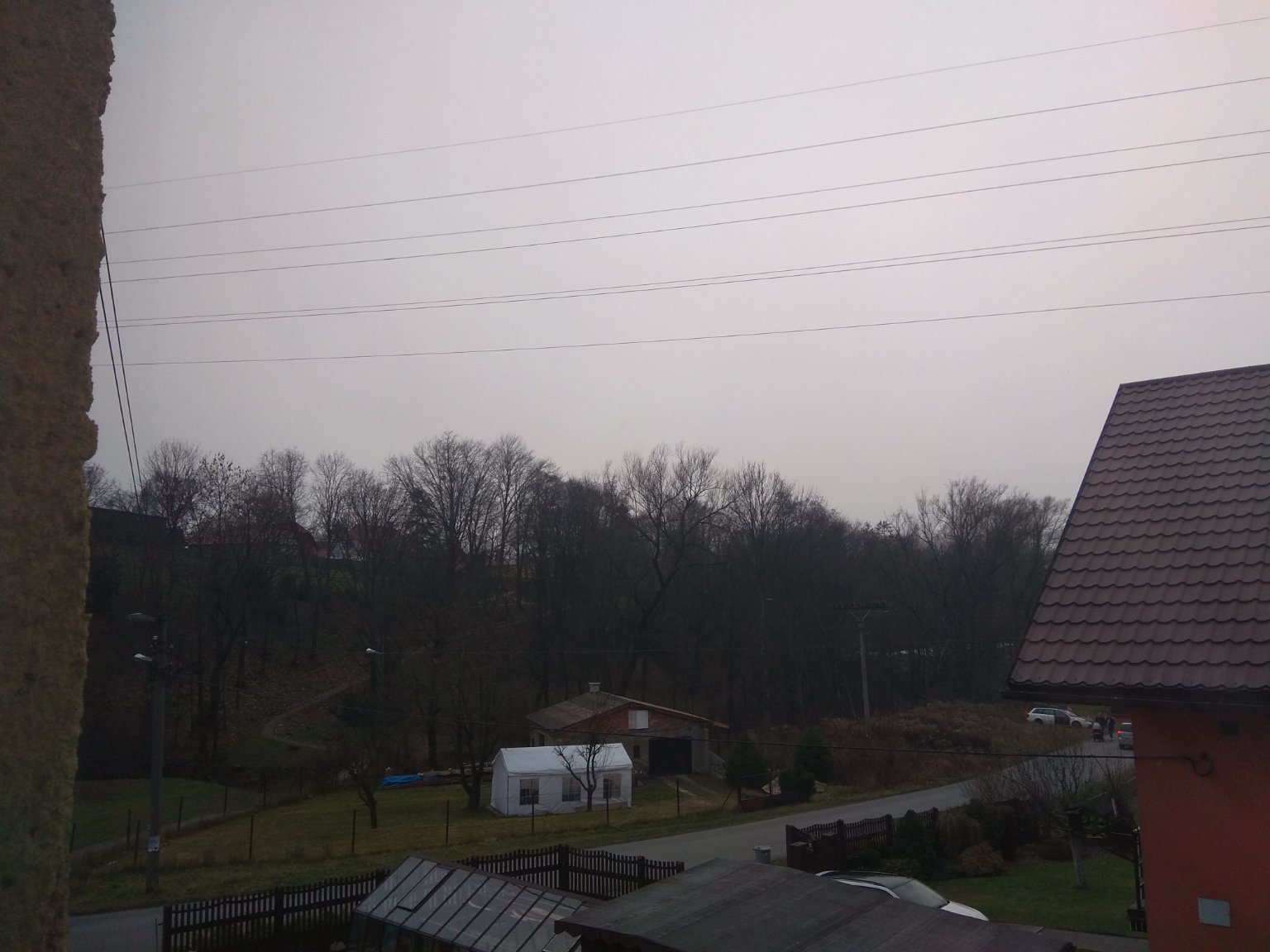 Vlhkost 64%, rychlost větru 30 km/h, v nárazech už párkrát dosáhl až 70 km/h, pocitová teplota je sražena o tři stupně. Nejzajímavější ze všeho je, že navzdory radarovým snímkům, které u nás už druhou hodinou ukazují srážky (po celkem dlouhou dobu se nad námi udržovaly zelené odrazy), nespadla prozatím ani jediná kapka (či vločka nebo krupka).