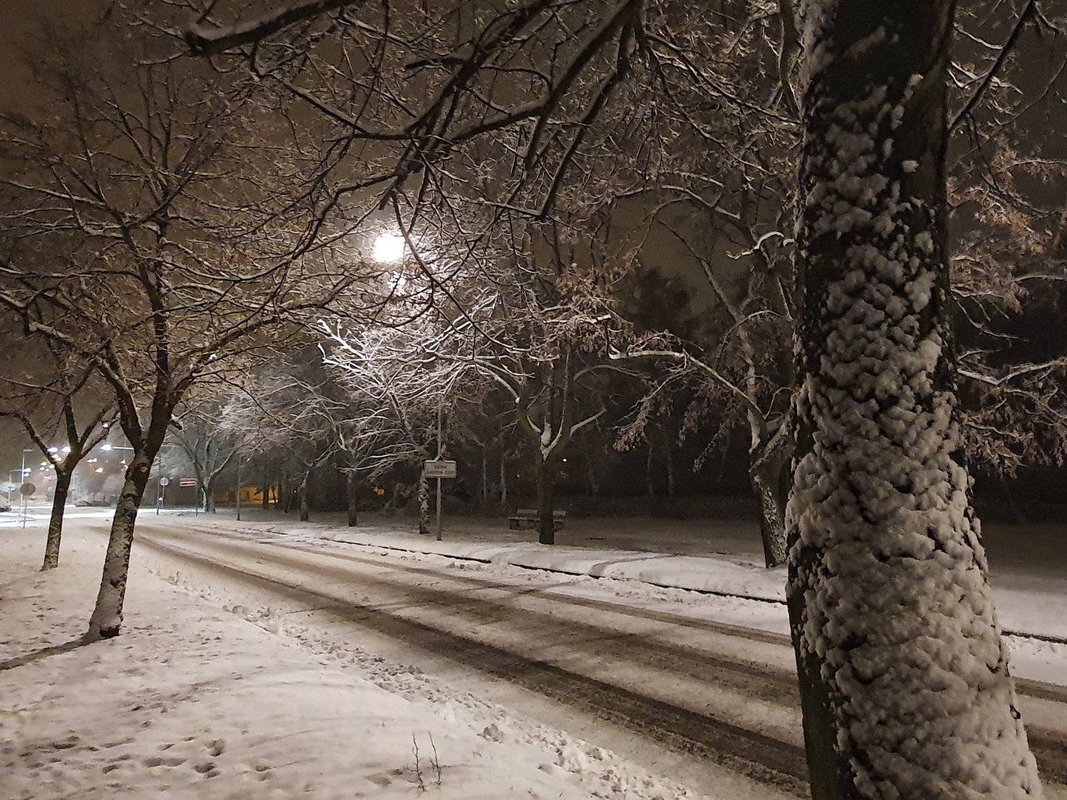 sněží, chvíli padal i zmrzlý déšť, -2°C