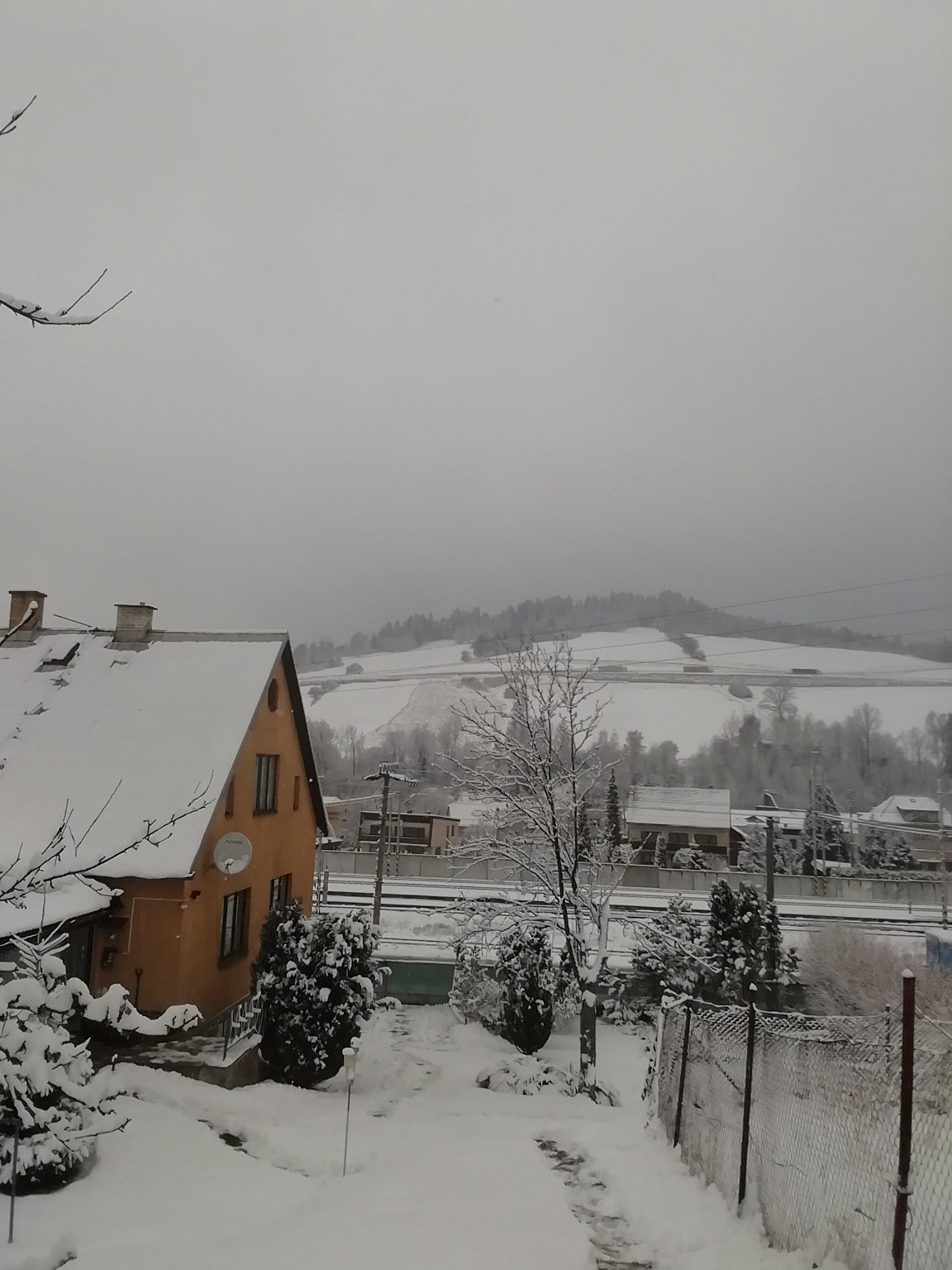 drobné slabé sněžení, sněhová pokrývka od 1cm do 6cm v centru města sněhu méně