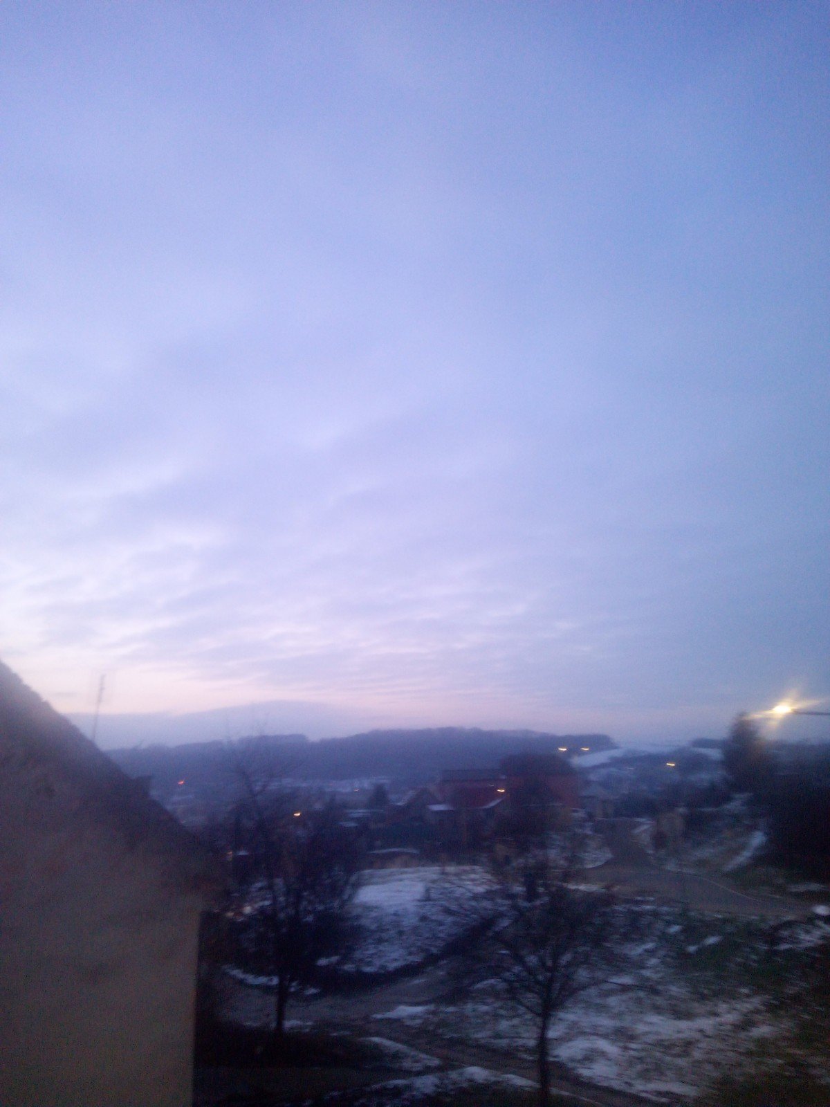 Aktuálně převažuje většinou oblačno a fouká většinou slabý vítr, poprašek sněhu