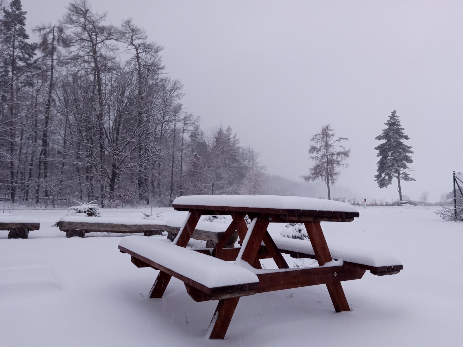 Sneží hustě,moc to netaje.