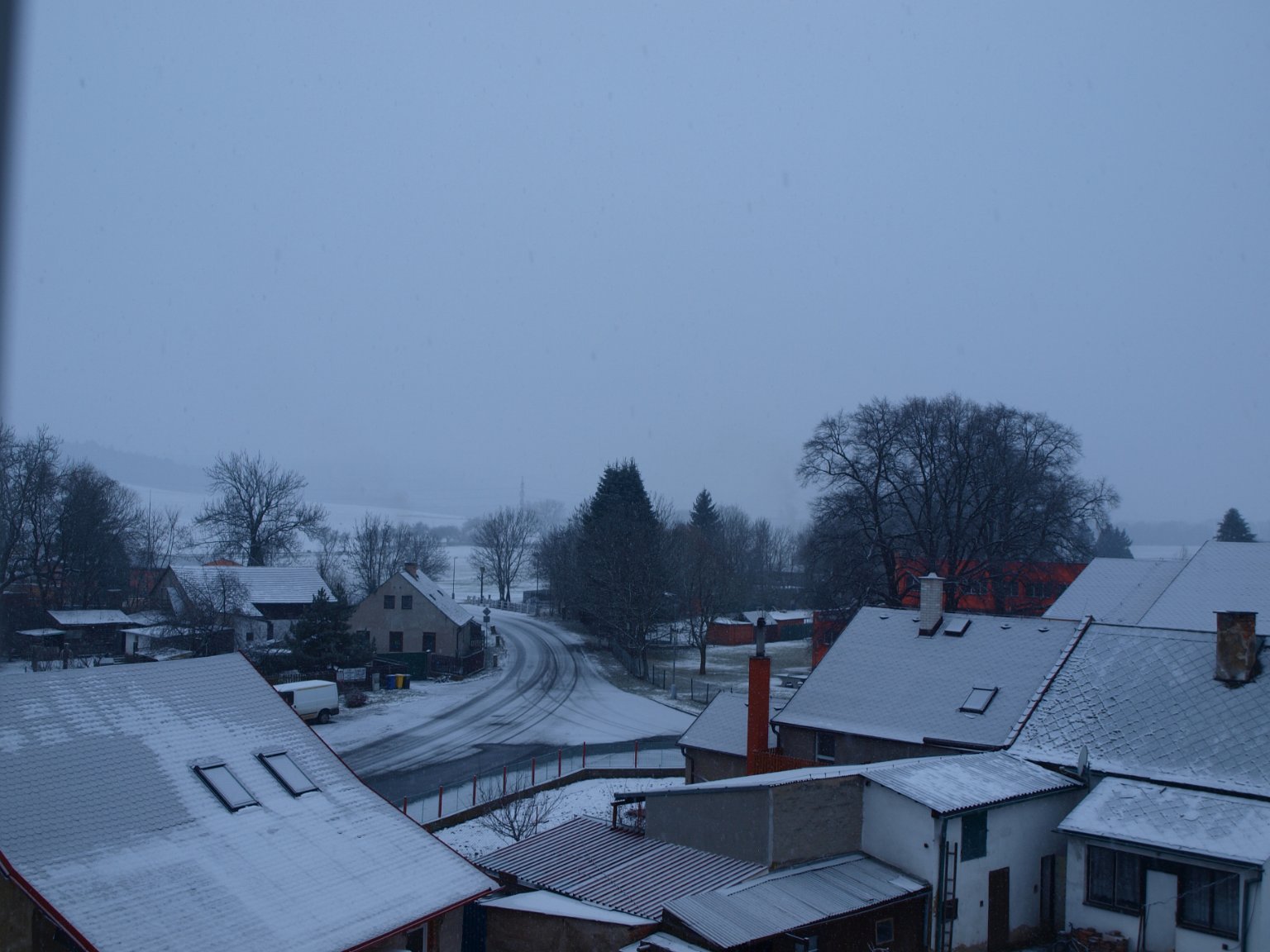 Hustě sněží,klidno,tlak 1005 hPa,vlhkost 95%