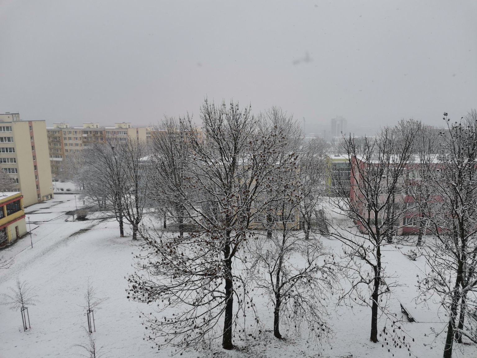 trvalé ,ale zatím ne moc vydatné sněžení, zatím 3 cm, tlak 1001hpa, vlhkost 96%