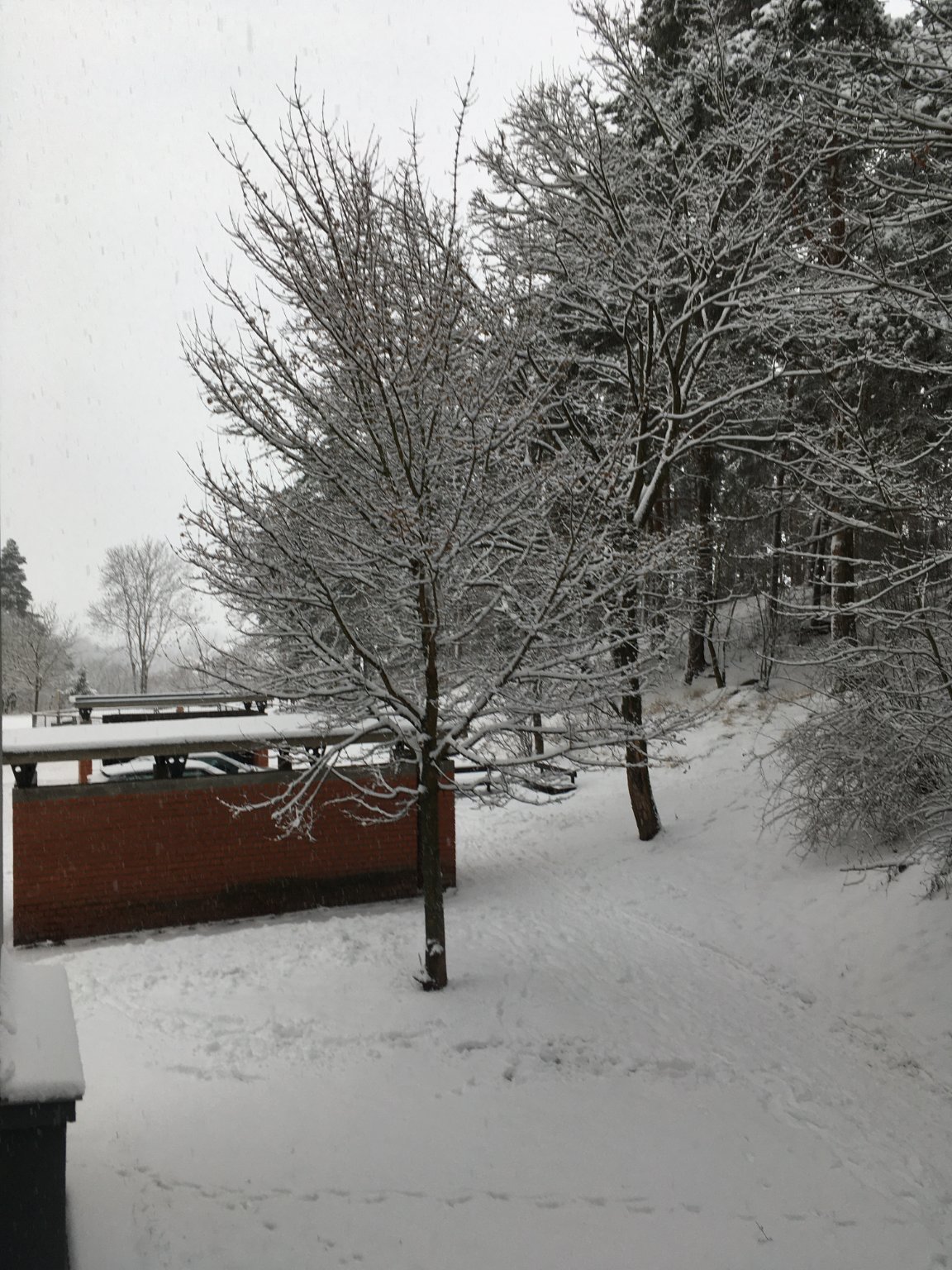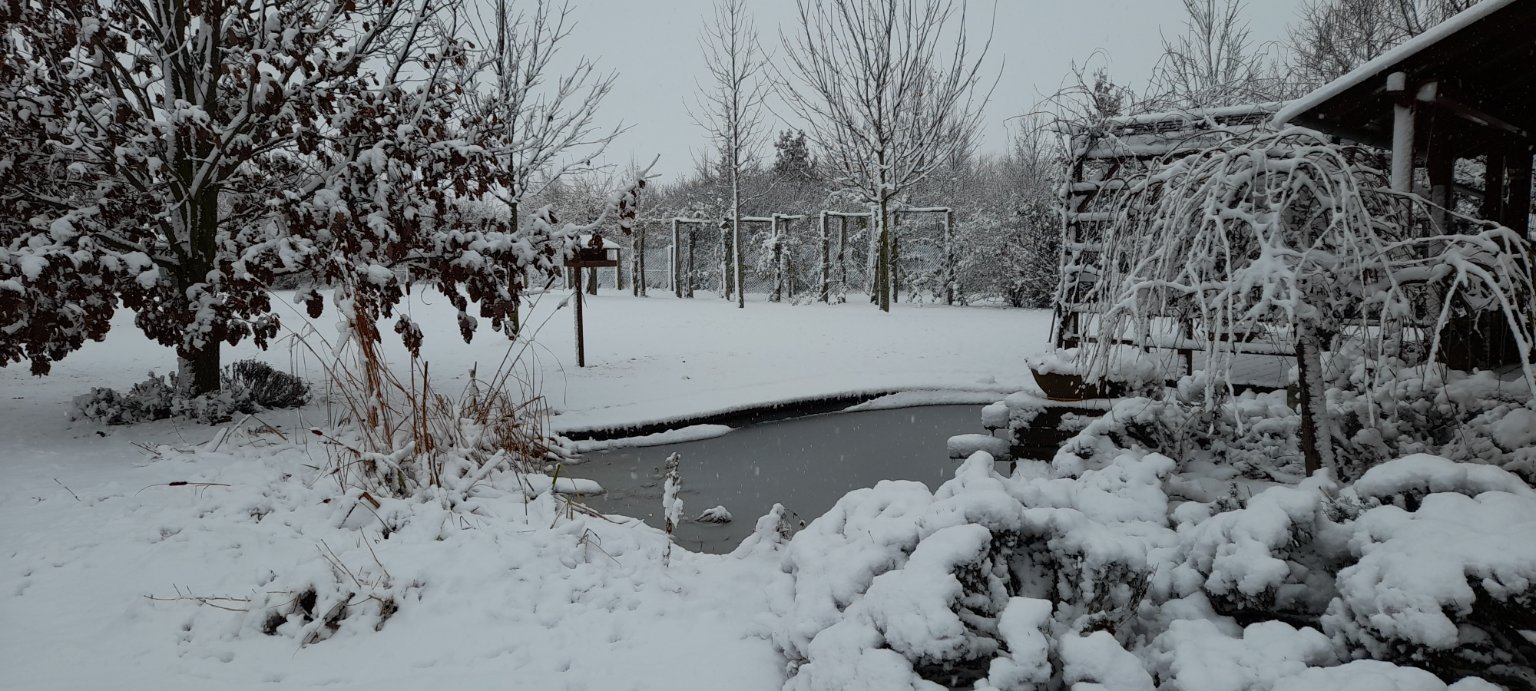 Od rána husté sněžení, zataženo, místy mlha, vlhkost 92%
