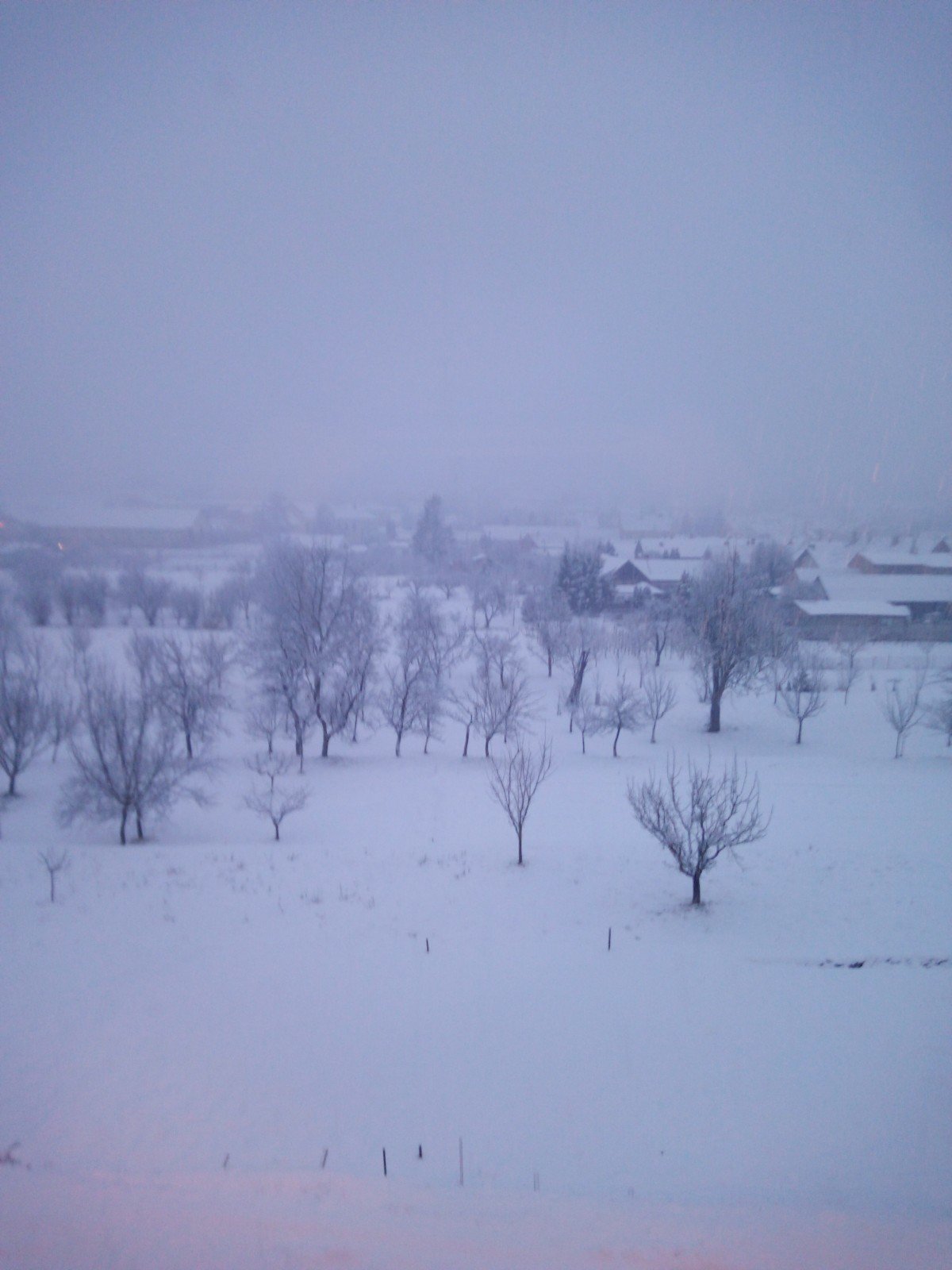 Trvale mírně sněží. Sněhová kalamita se zatím ale nekoná. Leží 6cm sněhu z toho 2cm starého. Nyní už ale sněžení výrazně zesiluje, tak uvidíme co večer. Pocitovou teplotu výrazně snižuje slabý severovýchodní vítr, tlak: 1005hPa.