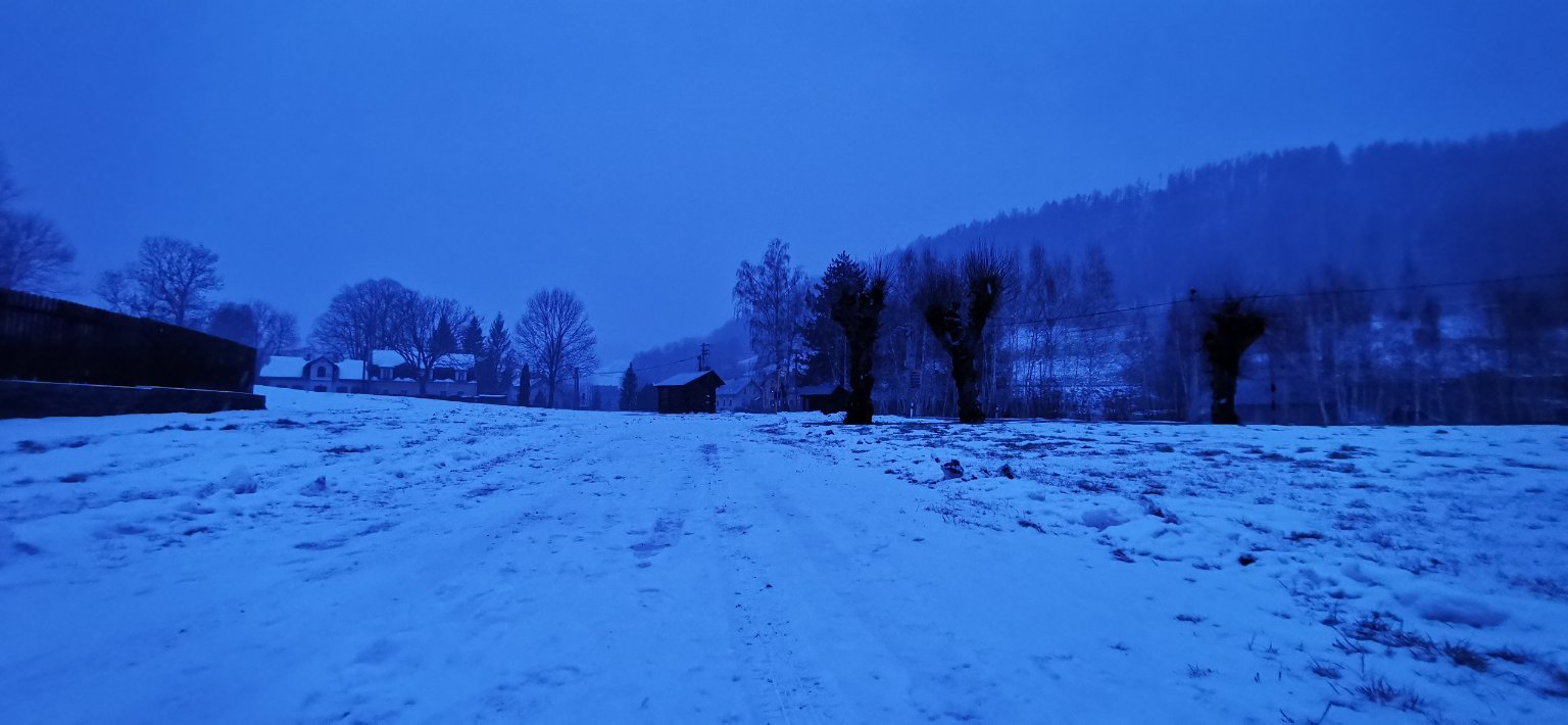 zataženo sněží opatrně na silnicích