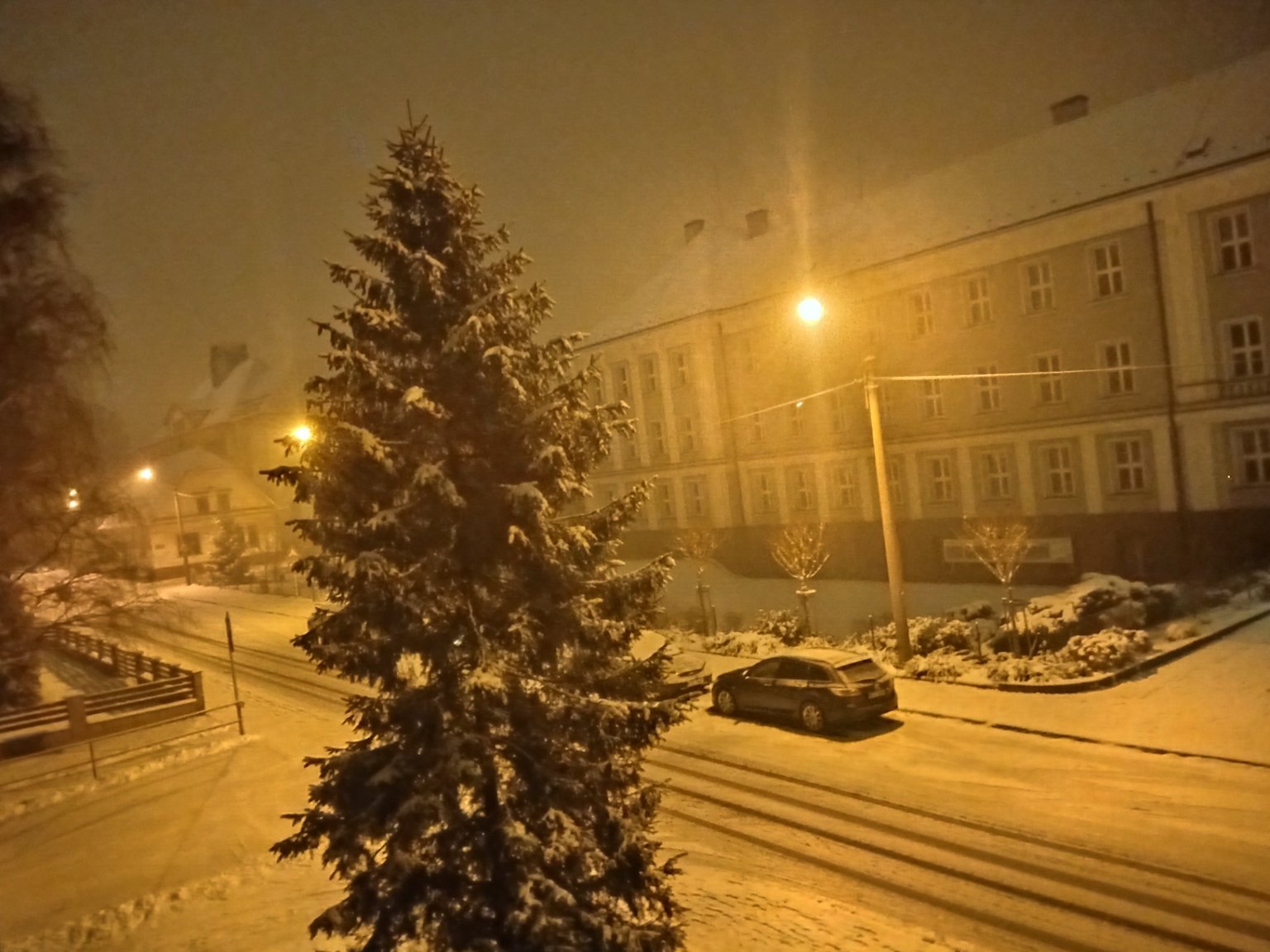 Drobně, ale hustě sněží, tlak 1006,8 hPa, slabý Z vítr.