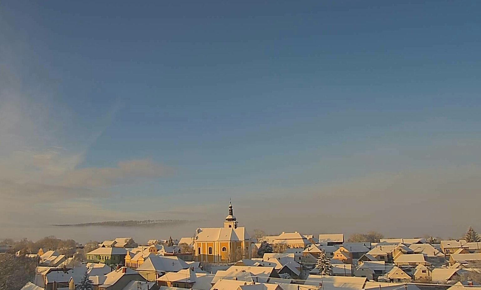 taje ❄ , velmi mokrý ❄, bezvětří, komíny nevidím, tak také mlhavo ;-)