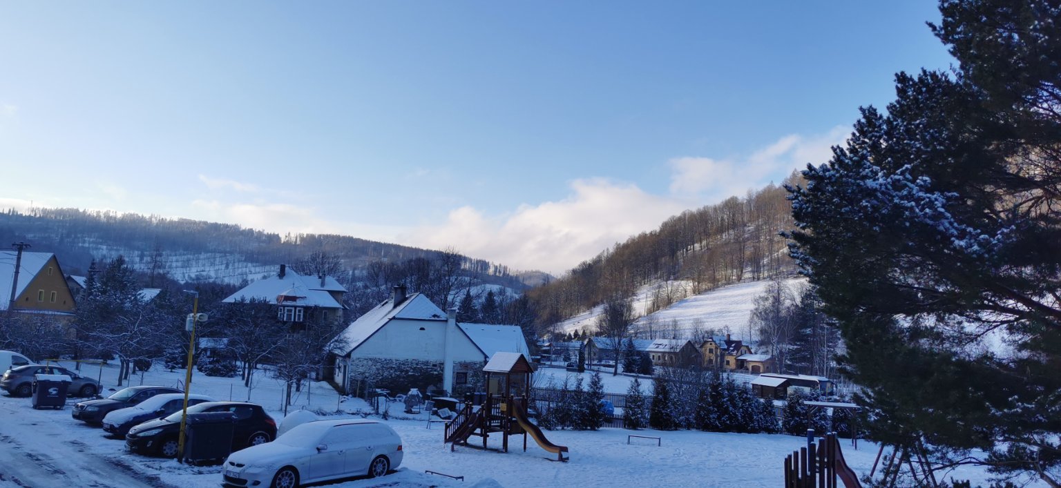 Klidno, bezvětří, taje❄ , chvílemi se ukazuje modrá obloha