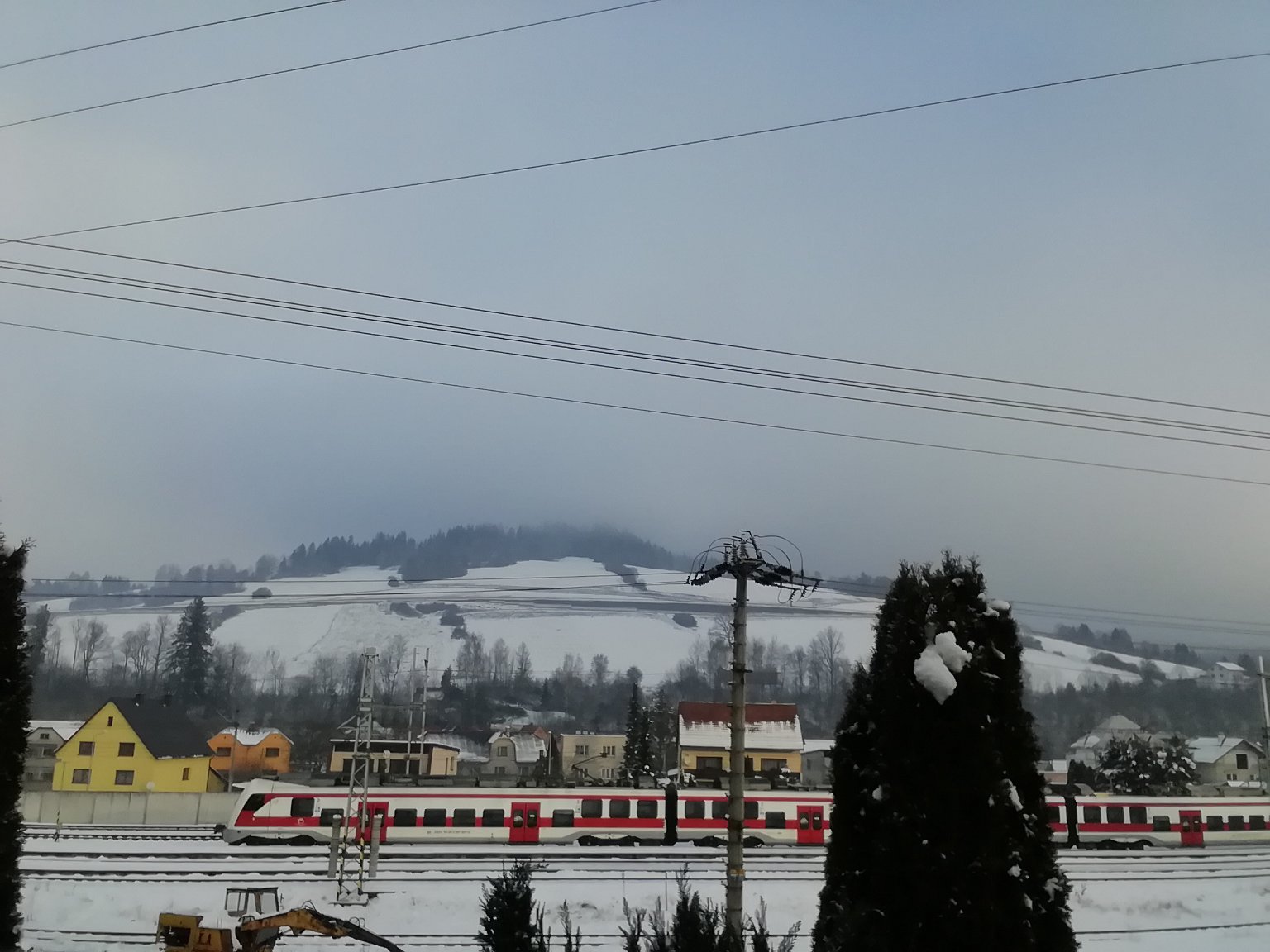 Mlha a mží. Tlak 1024 hPa, vítr SZ. Sníh ubývá.