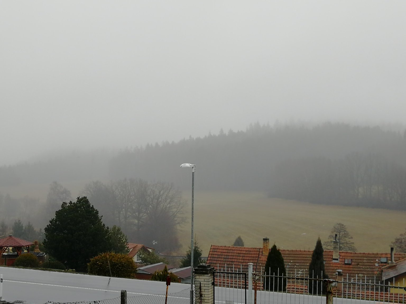 Aktuálně převažuje většinou zataženo a hustě mrholí a fouká většinou slabý vítr