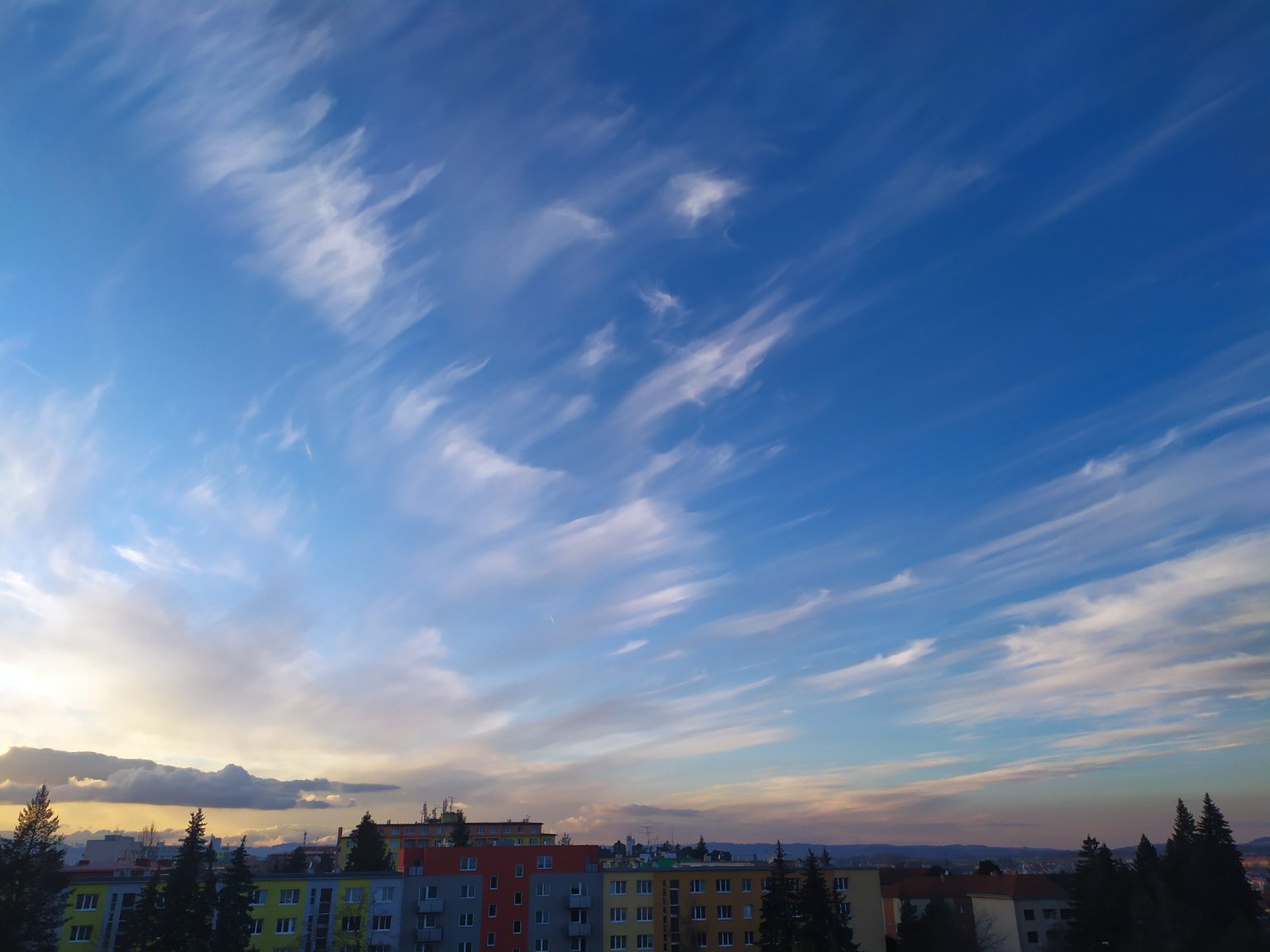 Aktuálně ve Vyskytné převažuje většinou polojasno až polooblačno a fouká většinou vánek, tady sníh je a krásný západ slunce jsou červánky bude mráz