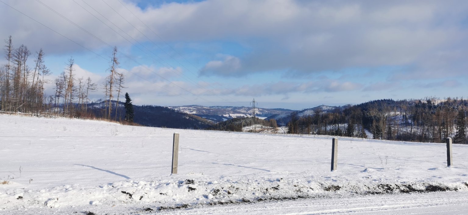 Večerní nečekané sněžení přineslo slabý centimetr sněhu. Noc byla poměrně mrazivá, teplota klesla k -7°C. Je bezvětří, tlak: 1030hPa.
