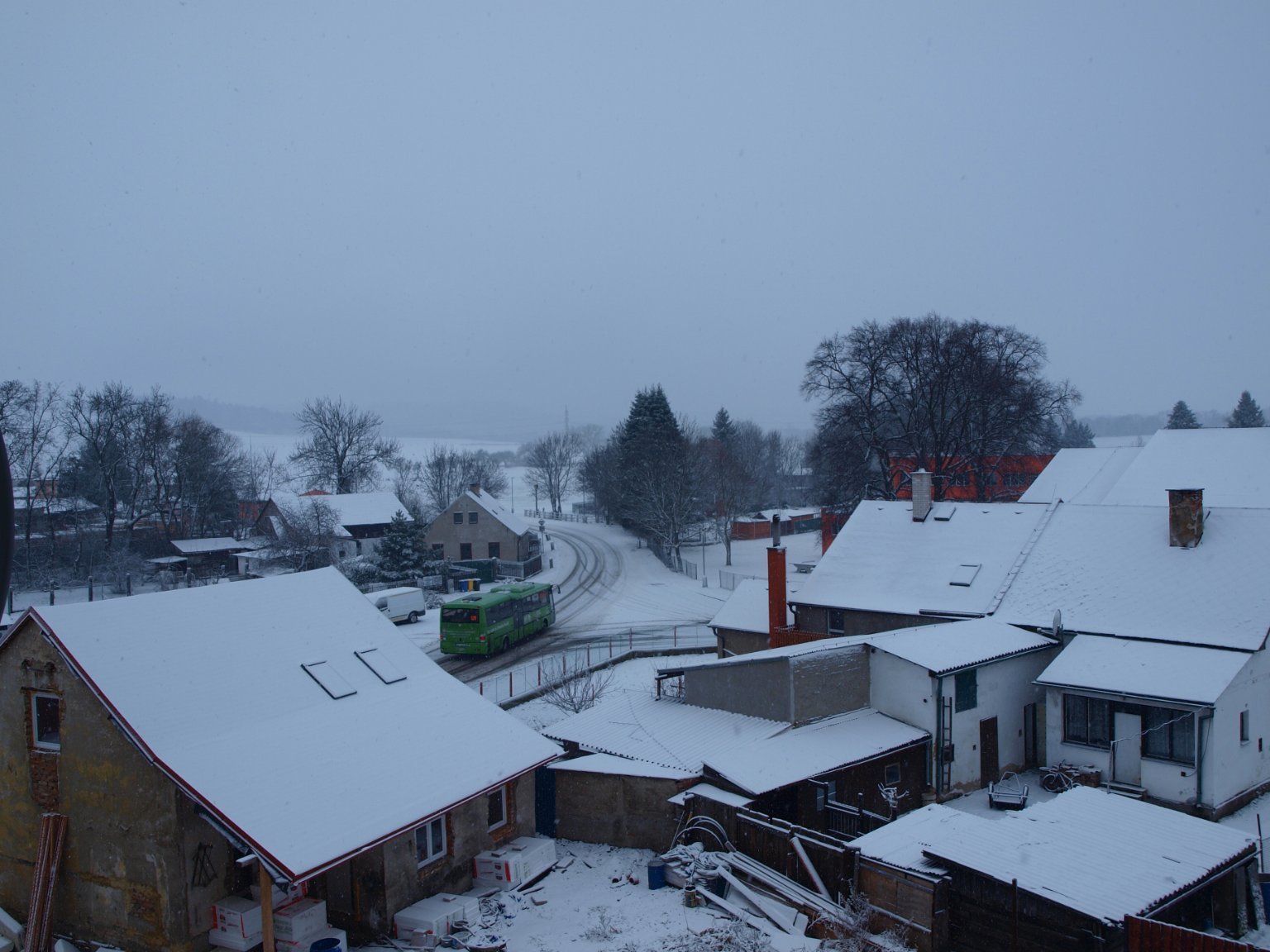 Zamračené, slabé sneženie