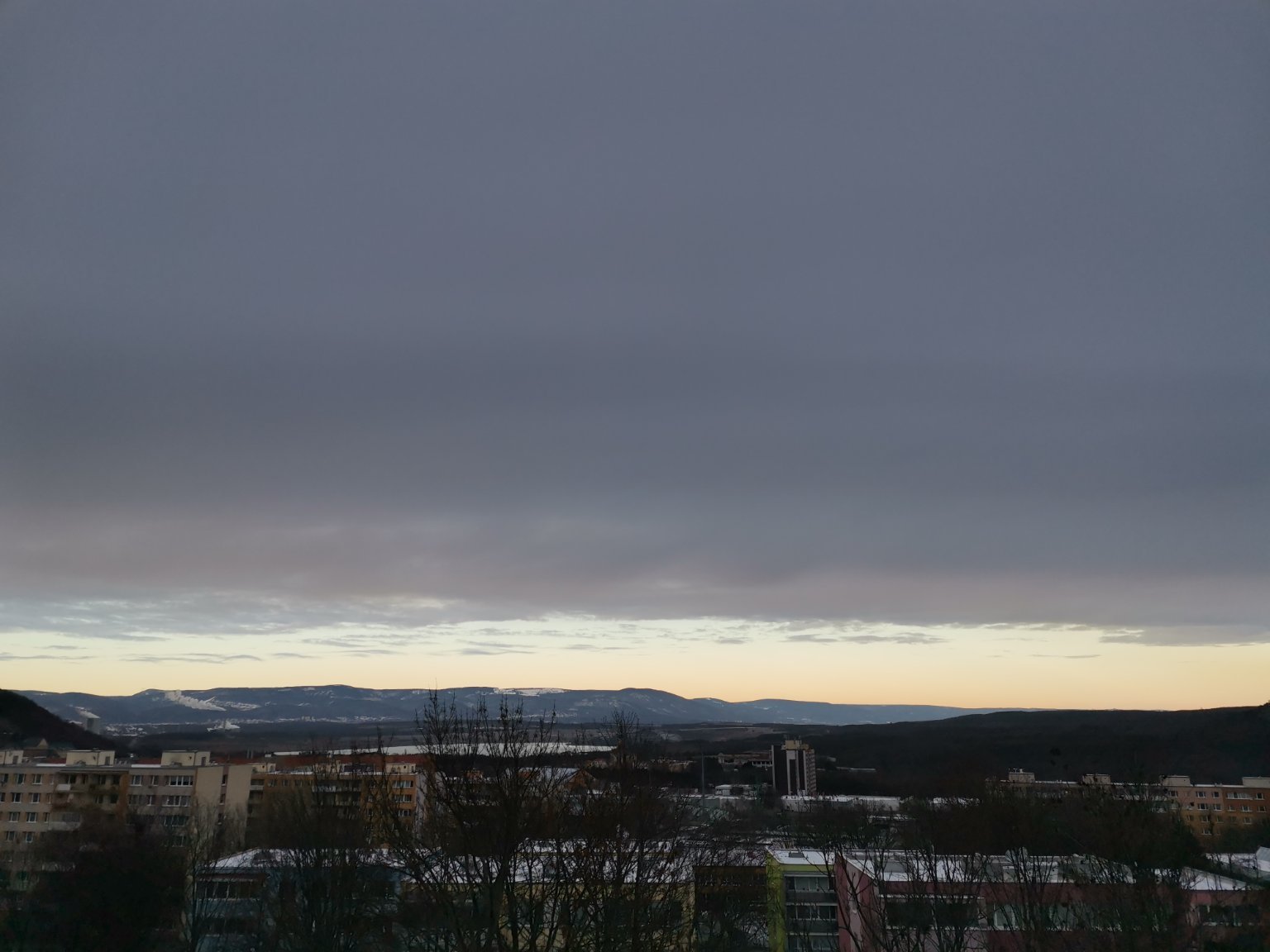 Hustě sněží,klidno,tlak 1009 hPa,vlhkost 94%