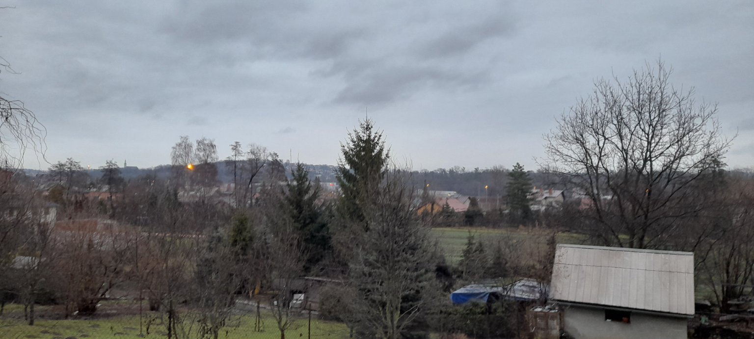 Polojasno, klidno, mlhy. Tlak 1021 hPa.
