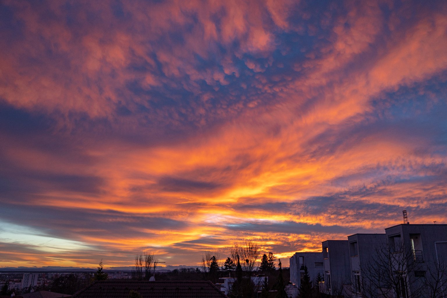 Aktuálně převažuje většinou oblačno až polooblačno a fouká většinou vánek, krásný silvestrovský západ s červánky