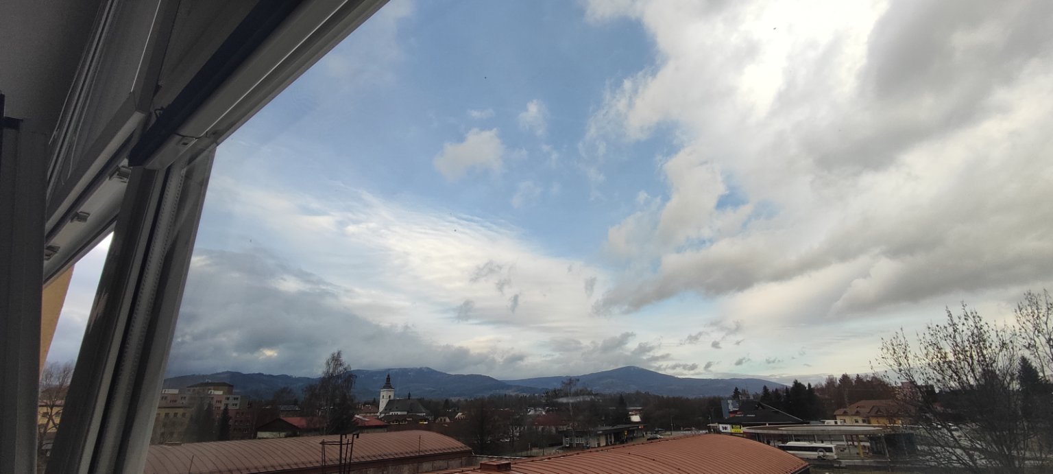 7,1°C, Oblačno, Snih: 0.cm. Na východě se to velmi černá, ale odchází to.