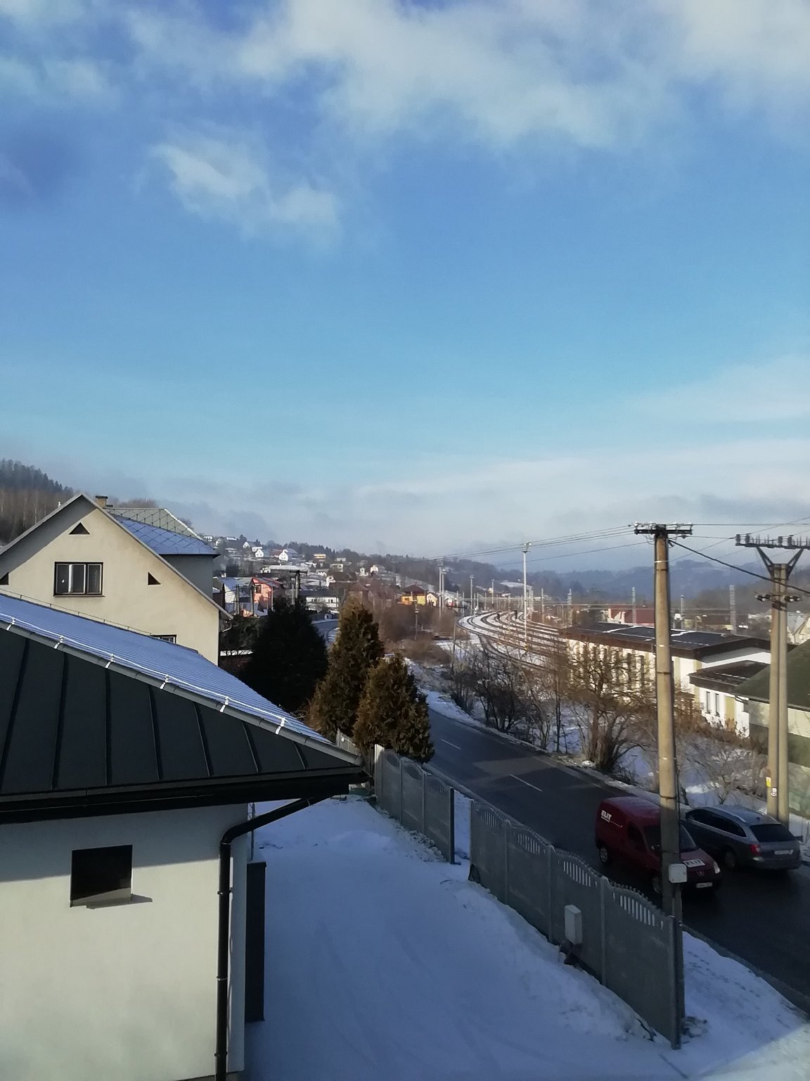 občas padá mokrý sníh, výška sněhu do 1cm mimo město možná i o něco více, zataženo, 1°C
