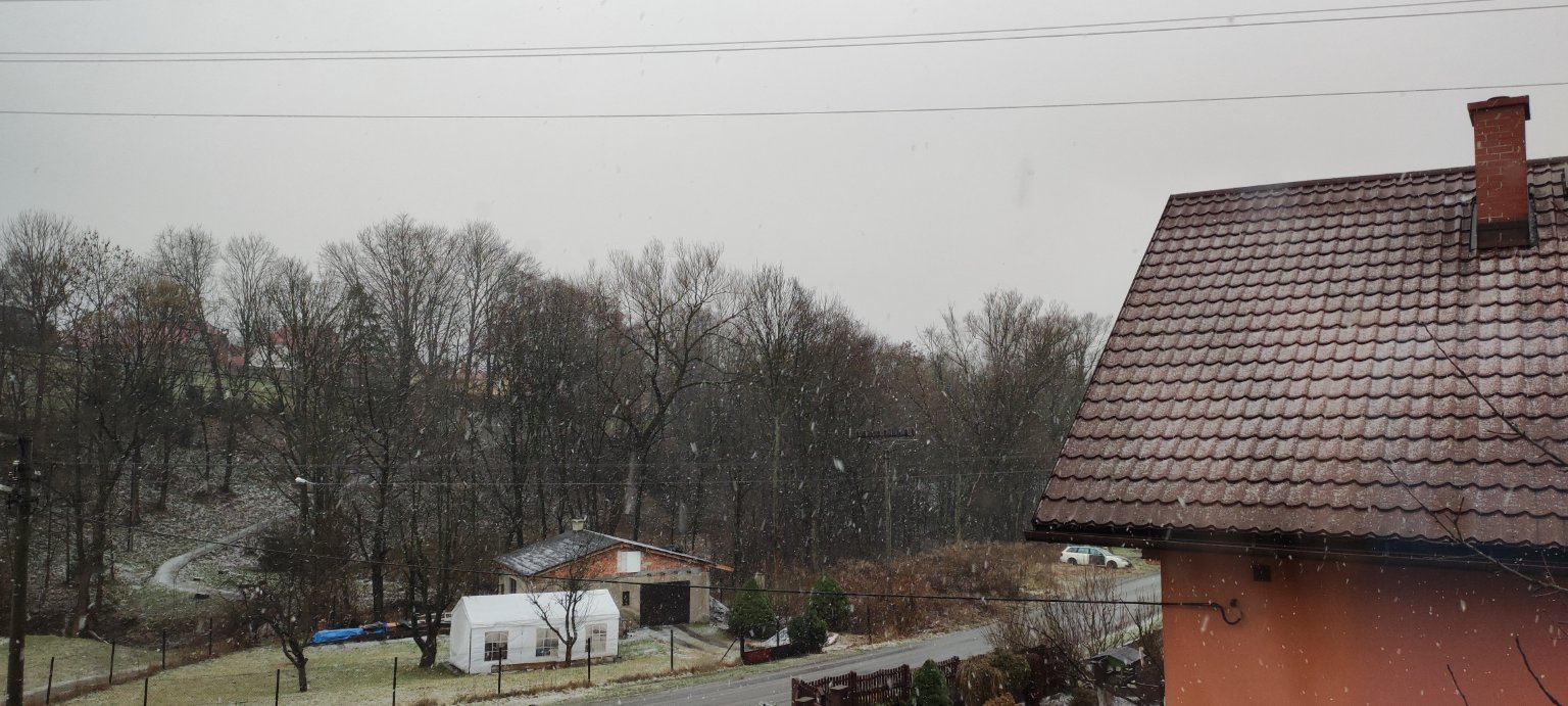 Tak to byl hukot - během pár minut z deště a větru do sněžení. A teplota z +2,5 na +0,5C. Aladin to zesílení srážek, ochlazení resp. načasování trefil přesně.