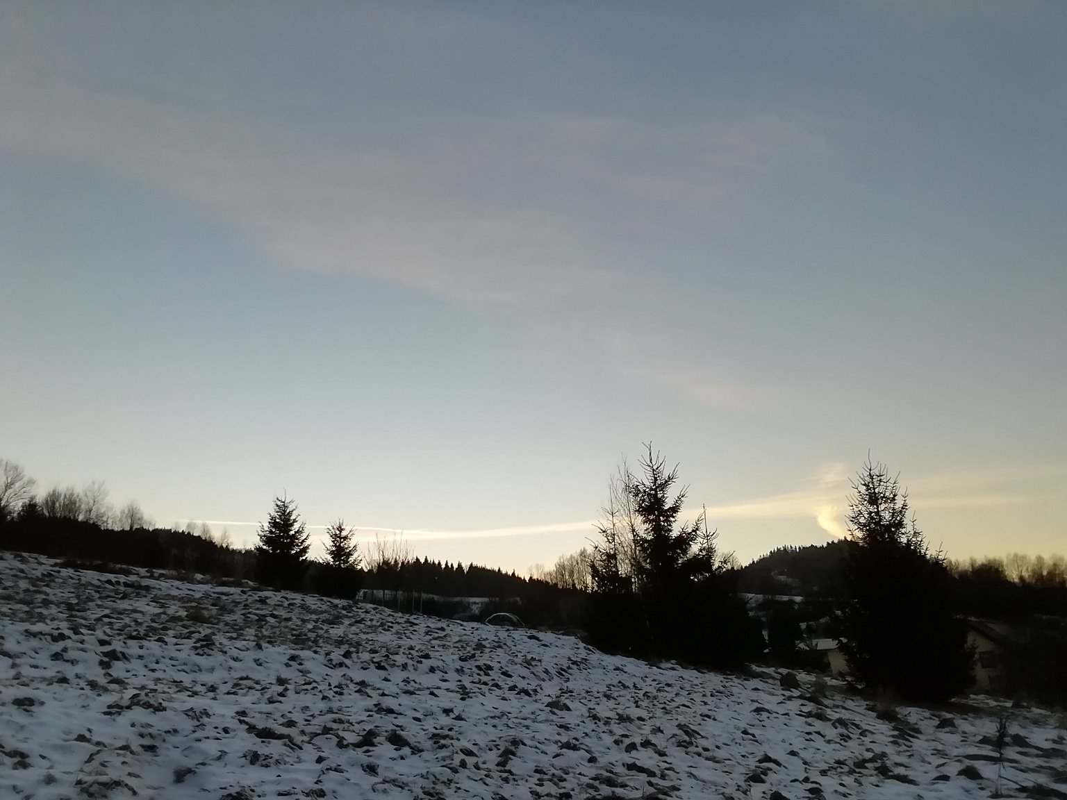 1,2°C, Polojasno, Sníh: nesouvislý. Takové dlouhé, hubené, nasvicene, Jablunkovske tornado...?