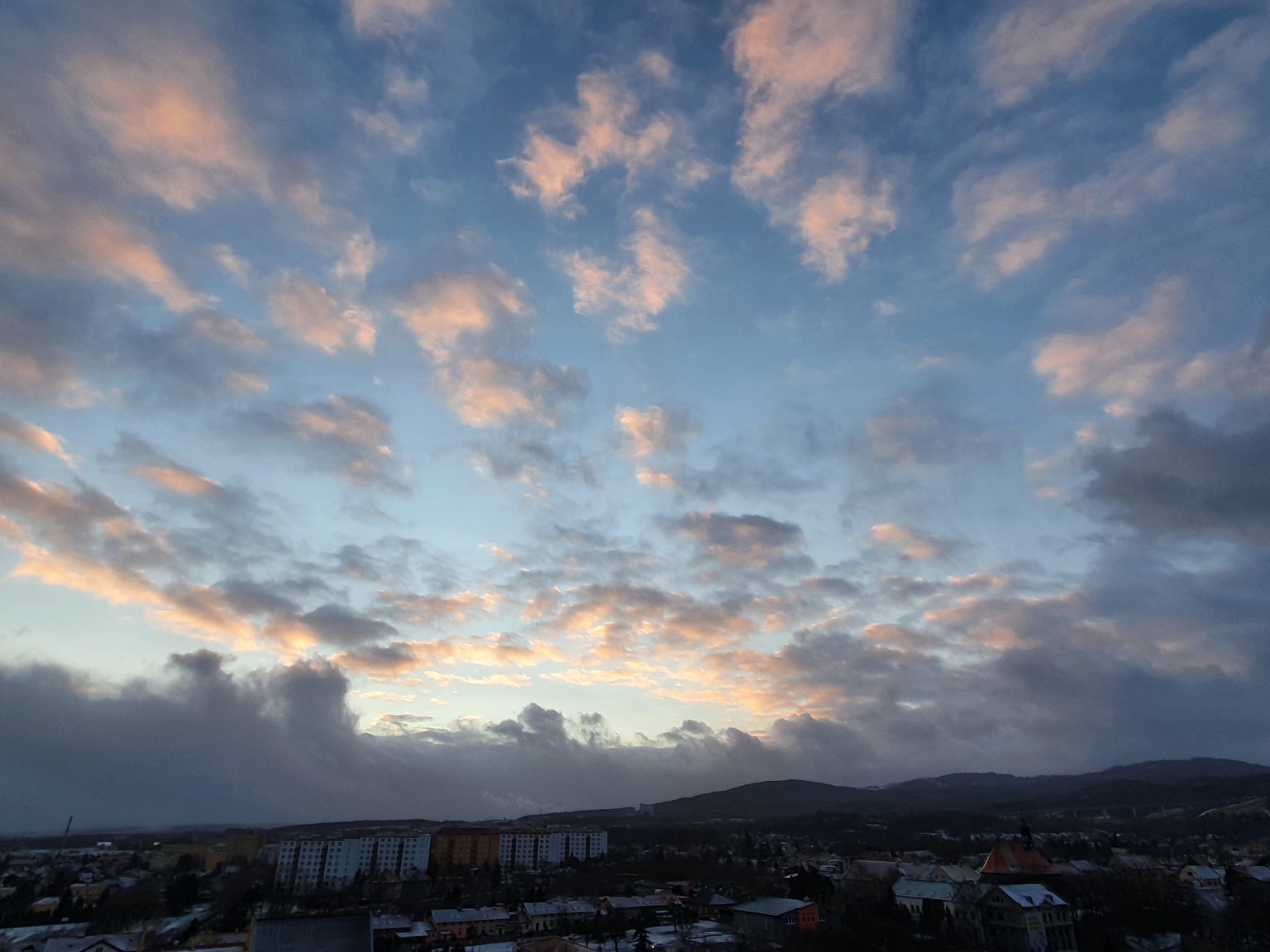 Okrajově nás ovlivňuje přeháňka. Tady jen slabě sněží. Vítr vane mírný.