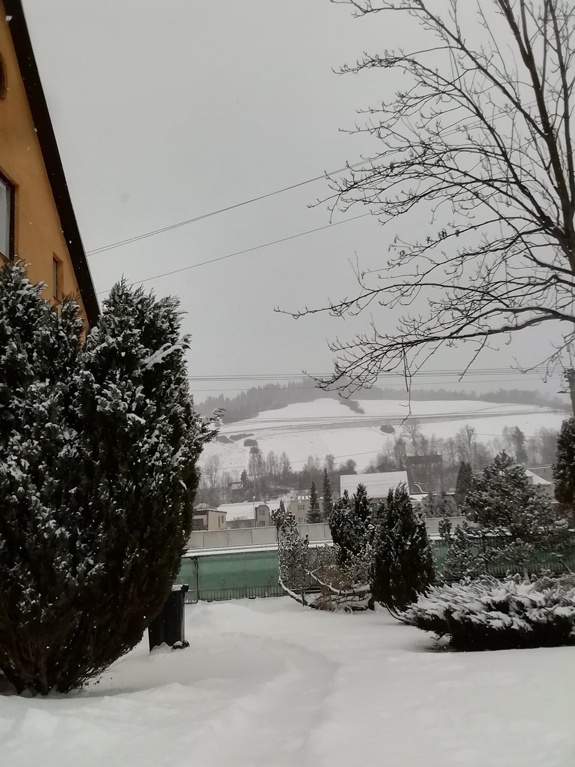 Převažuje krásné slunečné počasí. S tím sněhem vytváří slunce skvělou atmosféru. Od západu momentálně přichází oblačnost