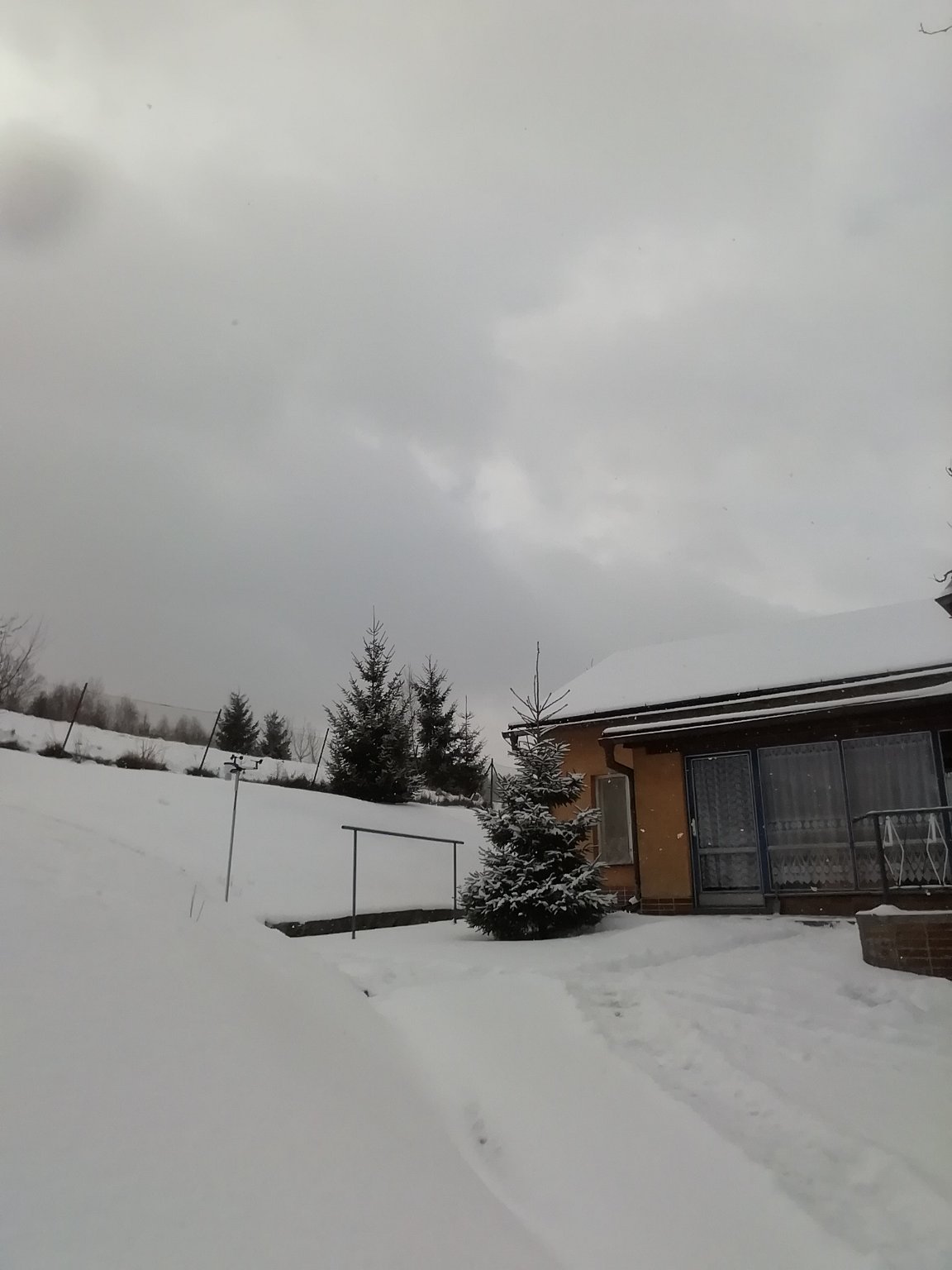Hustě sněží.
